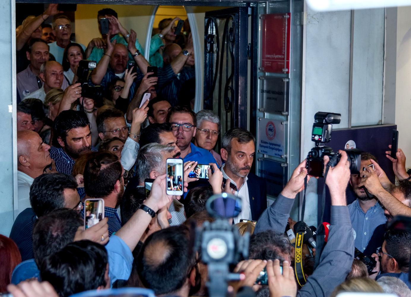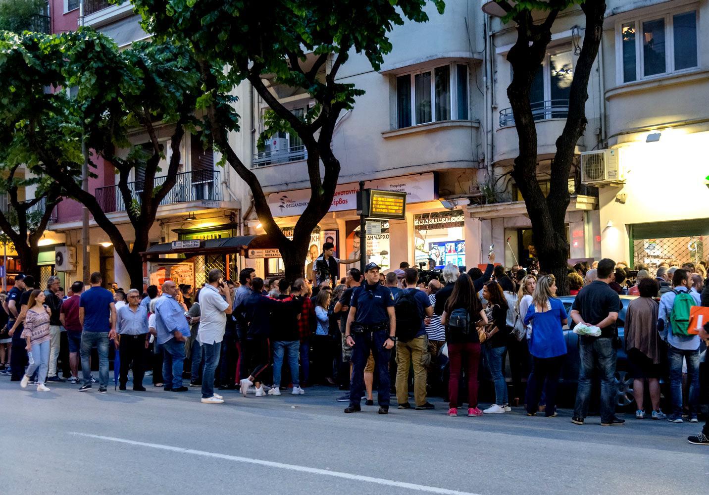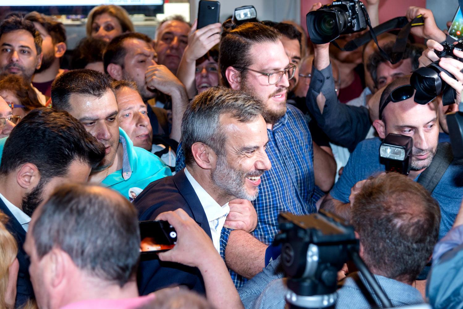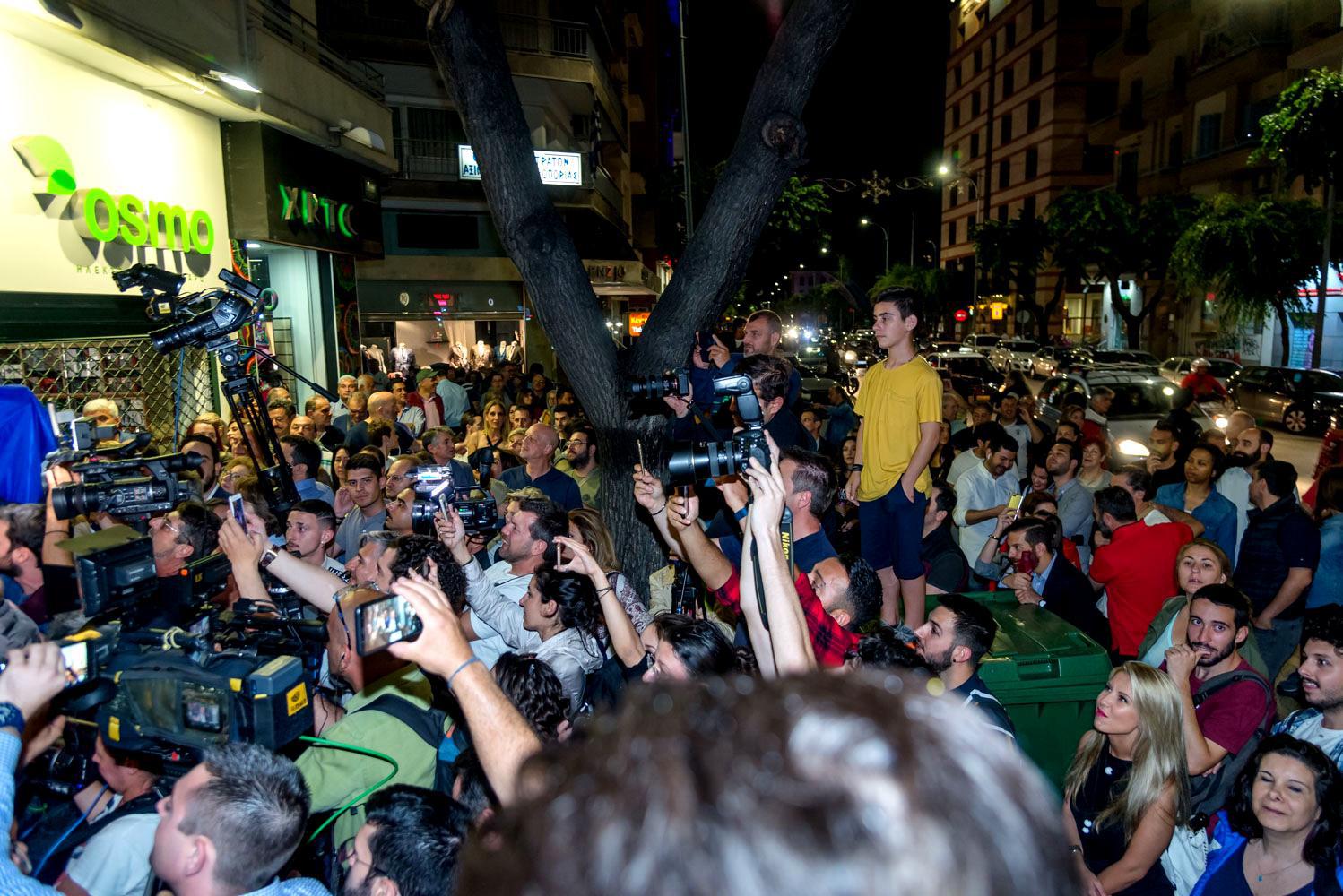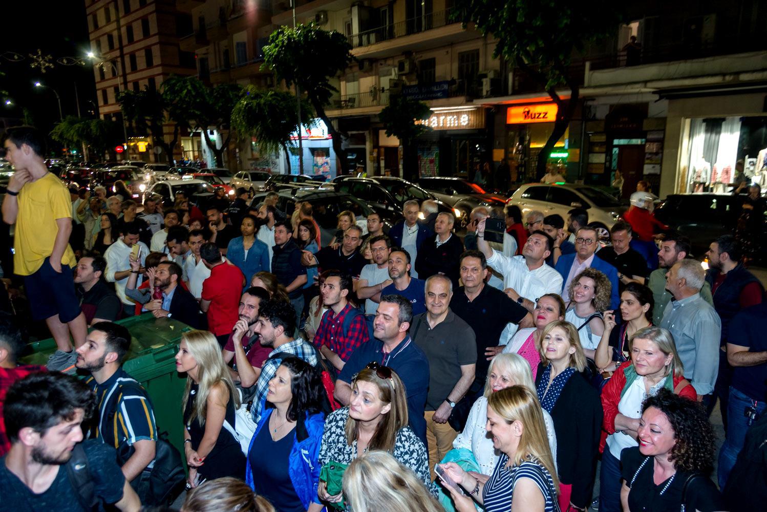 Ο νέος δήμαρχος Θεσσαλονίκης συγκέντρωσε πλήθος κόσμου έξω από το κεντρικό παράρτημα της παράταξης στην Τσιμισκή, με τους υποστηρικτές του να φωνάζουν συνθήματα και να χειροκροτούν.