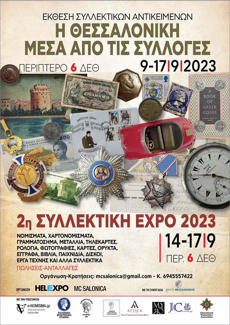 Η 2η Συλλεκτική EXPO 2023 διοργανώνεται από την εταιρία MC Salonica σε συνεργασία με τη Διεθνή Έκθεση Θεσσαλονίκης με στόχο την έκθεση, την ανταλλαγή και την προώθηση συλλογών και αντικειμένων από εμπόρους και συλλέκτες.