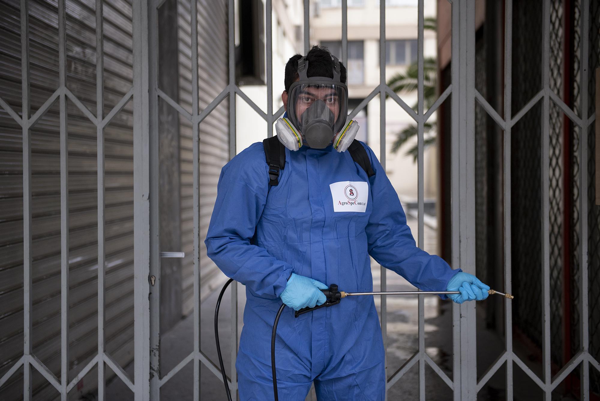 Ασχολούμαι διαρκώς με απολυμάνσεις τελευταία. Αυξήθηκε πολύ η δουλειά σε αυτό το κομμάτι. Δεν ασχολούμαστε ως εταιρία πια κυρίως με τις απεντομώσεις και τις μυοκτονίες. Η αύξηση της ζήτησης για απολύμανση ήταν τεράστια. Όλα ξεκίνησαν για μας με ένα κατάστημα αθλητικών ειδών που ήταν ύποπτο για κρούσμα ιού. Ήταν το πρώτο σοκ. Δεν είχαν κλείσει ακόμα υποχρεωτικά τα καταστήματα. Σκέφτεσαι και αν υπάρχει; Πήραμε όλα τα μέτρα προστασίας σύμφωνα με το πρωτόκολλο. Ωράριο εργασίας δεν υπάρχει πια. Δουλεύουμε διαρκώς. Λένε μερικοί ότι είμαστε από τους πρωταγωνιστές. Θα προτιμούσα να μην πρωταγωνιστούσαμε με αυτό τον τρόπο. Δουλεύεις διαρκώς και δεν προλαβαίνεις να σκεφτείς. Καχύποπτος και προσεκτικός είσαι. Προσέχεις όμως και συνεχίζεις.