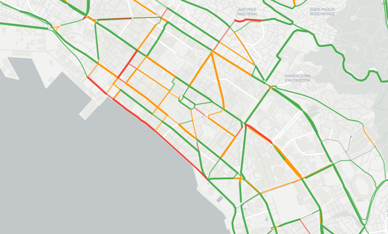 Αυξημένη η κίνηση στους δρόμους του Κέντρου της πόλης αυτή τη στιγμή σύμφωνα με τους χάρτες του TrafficThess και του mykosmos.gr.