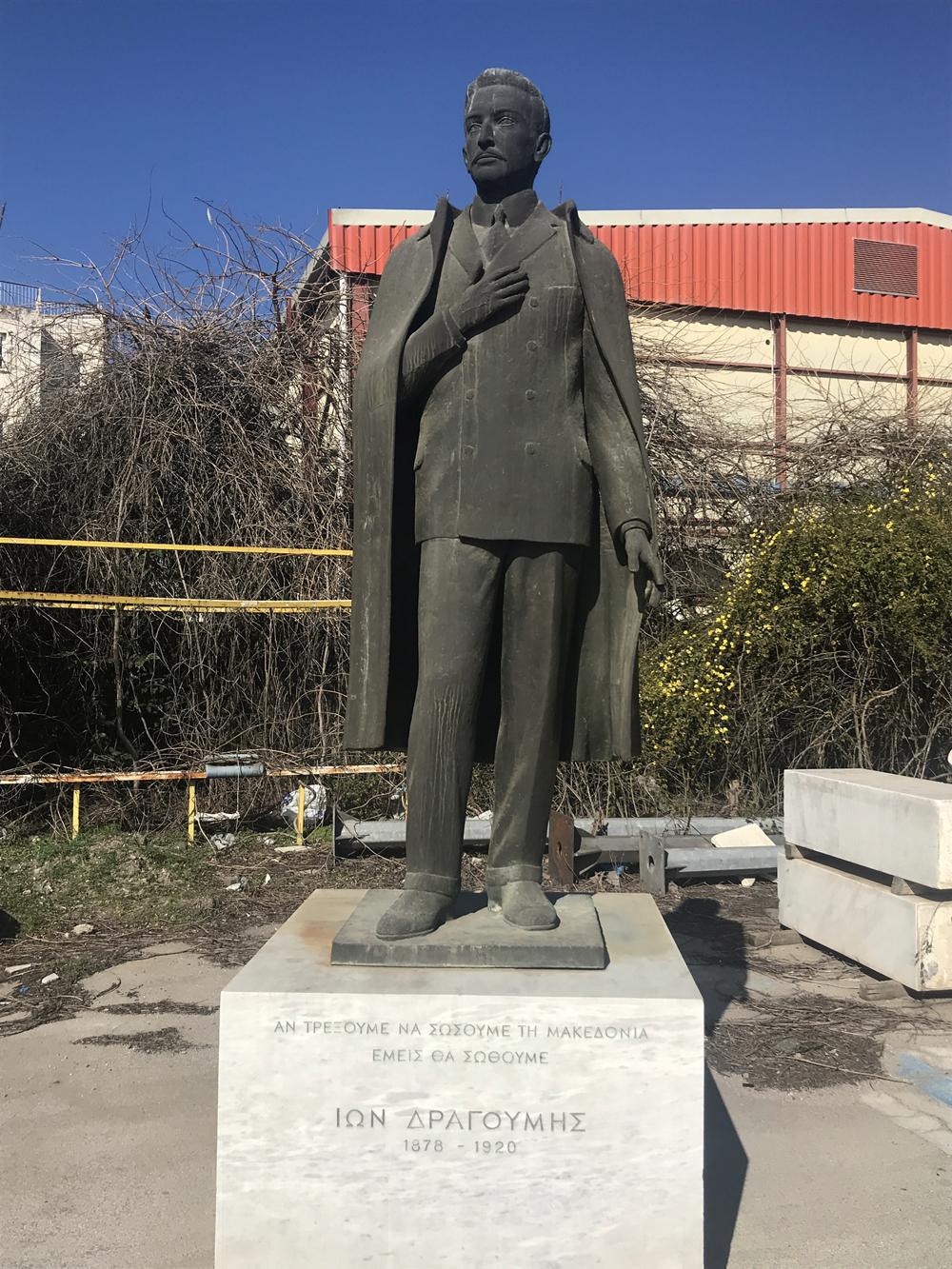 Ήταν κάποτε μια πλατεία και το όνομα αυτής «Πλατεία Μακεδονομάχων». Για όσους την θυμούνται, πρόκειται για τον χώρο που καταλαμβάνει η πλατεία πάνω από την Εγνατία και την πλατεία Αγίας Σοφίας, στο ύψος της Αχειροποίητου. Εκτός από την παιδική χαρά και το πάρκο, ανάμεσα στα ψηλά δέντρα υπήρχαν οι προτομές των Μακεδονομάχων δεξιά και αριστερά, και στο κέντρο ένα άγαλμα του Ίωνα Δραγούμη. Όταν η πλατεία μετατράπηκε σε εργοτάξιο του Μετρό (ένα από τα πολλά που άλλαξαν την γεωγραφία του κέντρου της πόλης), το άγαλμα και οι προτομές μετακινήθηκαν και τοποθετήθηκαν στον αύλειο χώρο των Παλιών Σφαγείων. Ο σχεδιασμός προέβλεπε με την ολοκλήρωση των έργων του μετρό, οι πλατείες και οι ανοιχτοί χώροι να αποκατασταθούν και οι προτομές να επιστρέψουν στον φυσικό τους χώρο. Η εικόνα των προτομών αυτών χρησιμοποιήθηκε για δεκάδες ψεύτικες δημοσιεύσεις κατά την διάρκεια της υπογραφής της «Συμφωνίας των Πρεσπών», που υποστήριζαν πως ο Δήμος ξηλώνει όλα τα αγάλματα των αγωνιστών του Μακεδονικού Αγώνα ως μέρος της συμφωνίας.