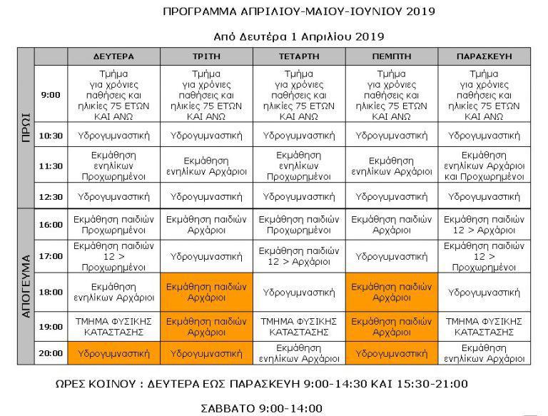Αναλυτικά το πρόγραμμα στον πίνακα που ακoλουθεί: