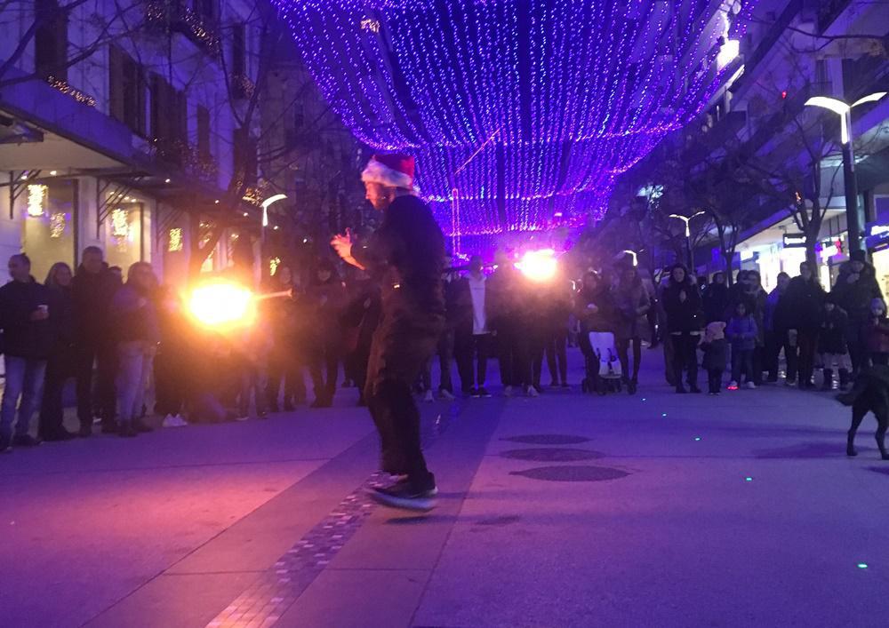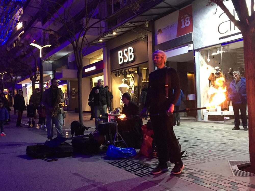 Η πόλη, κατά την τρέχουσα εορταστική περίοδο, κρύβει εκπλήξεις σε κάθε γωνιά της. Περπατάς για την καθιερωμένη, χριστουγεννιάτικη βόλτα σου και πέφτεις πάνω σε καλλιτέχνες δρόμου που προσθέτουν τη δική τους αστερόσκονη μαγείας στην ατμόσφαιρα της Θεσσαλονίκης.