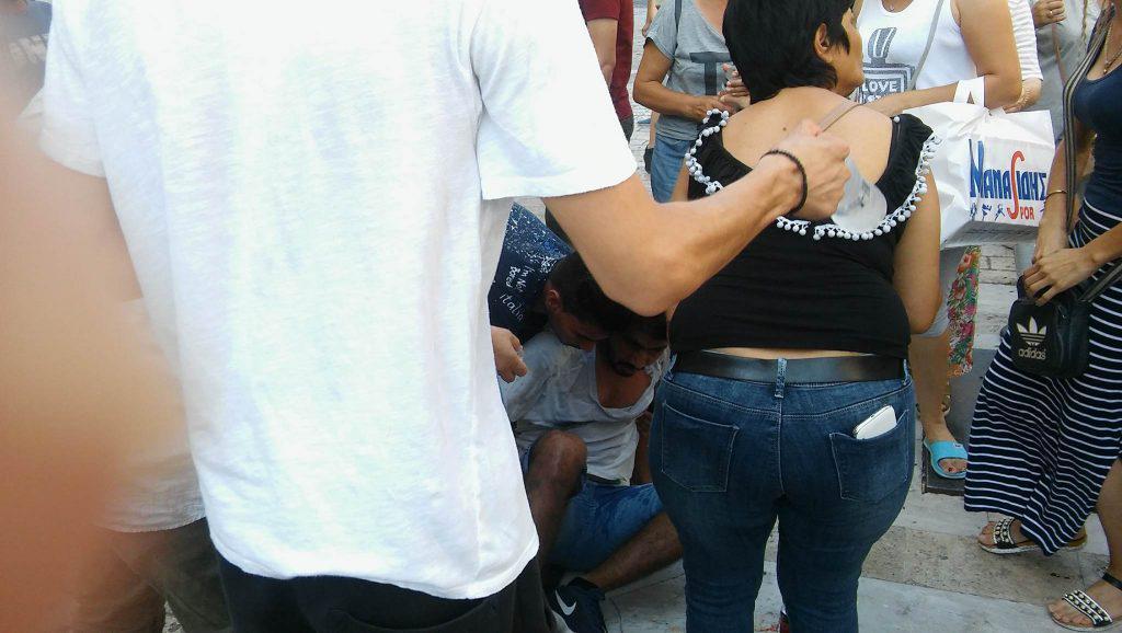Ομάδες αλλοδαπών ξαφνικά άρχισαν να γρονθοκοπούν άτομα σκληρά, να τρέχουν στη πλατεία κρατώντας στα χέρια οικοδομικά εργαλεία, σπάζοντας μπουκάλια και χτυπώντας βάναυσα.