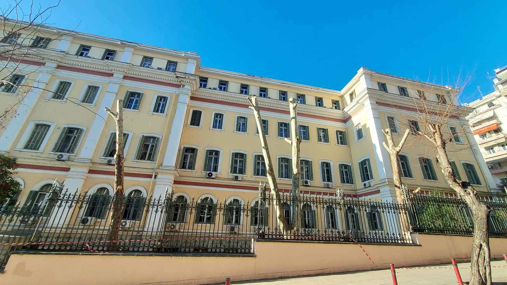 Εντύπωση προκάλεσαν σήμερα οι εργασίες στο Υπουργείο Μακεδονίας και Θράκης, καθώς δεκάδες πολίτες αντίκρισαν την εικόνα κομμένων και πεσμένων πλατανιών στο περιφραγμένο χώρο του Υπουργείου.
