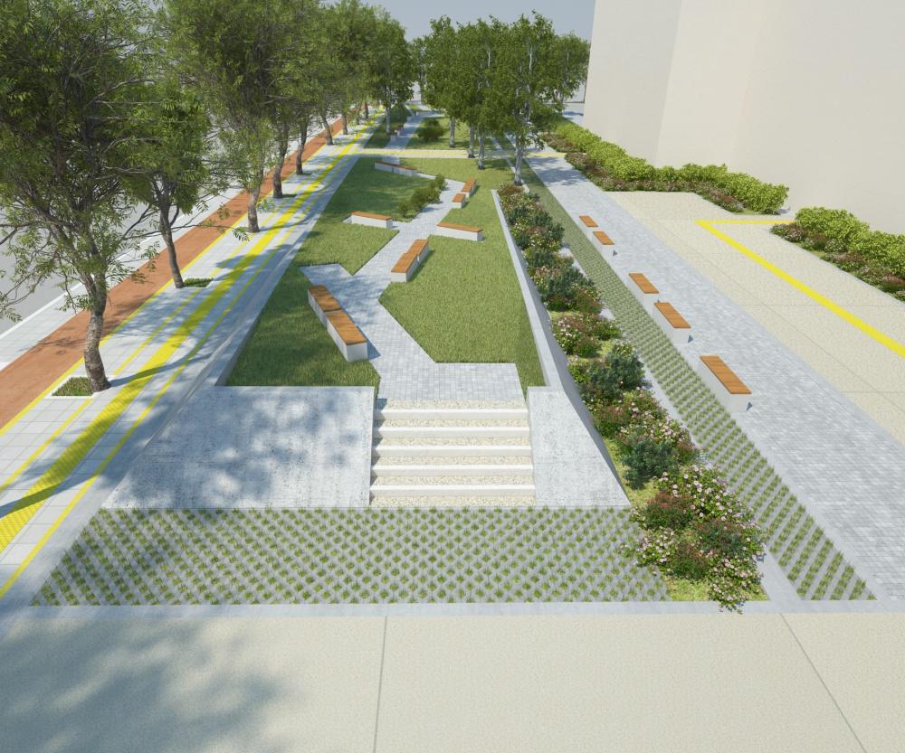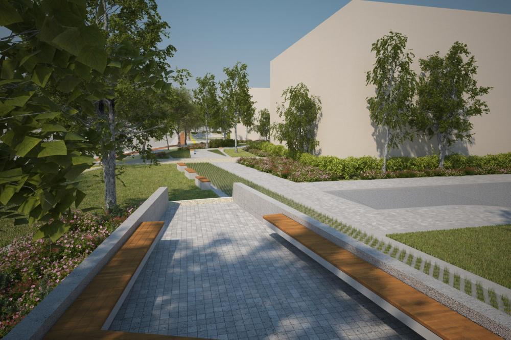 – Την αισθητική αναβάθμιση της περιοχής με την βελτίωση του πρασίνου και των φυτεύσεων γενικότερα (θάμνοι, δέντρα, φυσικός χλοοτάπητας). – Την ενίσχυση της διαπερατότητας των εδαφών με την αύξηση των ημι-διαπερατών ή πλήρως διαπερατών επιφανειών κατά τρόπο που θα βελτιωθούν οι ικανότητες ανάπτυξης βλάστησης, απορρόφησης των υδάτων και θα μειωθεί (με την χρήση φυσικών υλικών) η απορρόφηση θερμότητας.