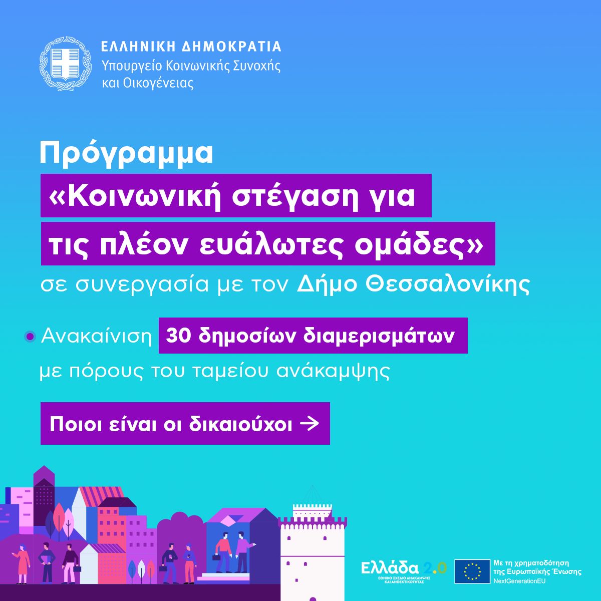 Τι προβλέπει το πρόγραμμα «Κοινωνική Στέγαση για τις πλέον ευάλωτες ομάδες»