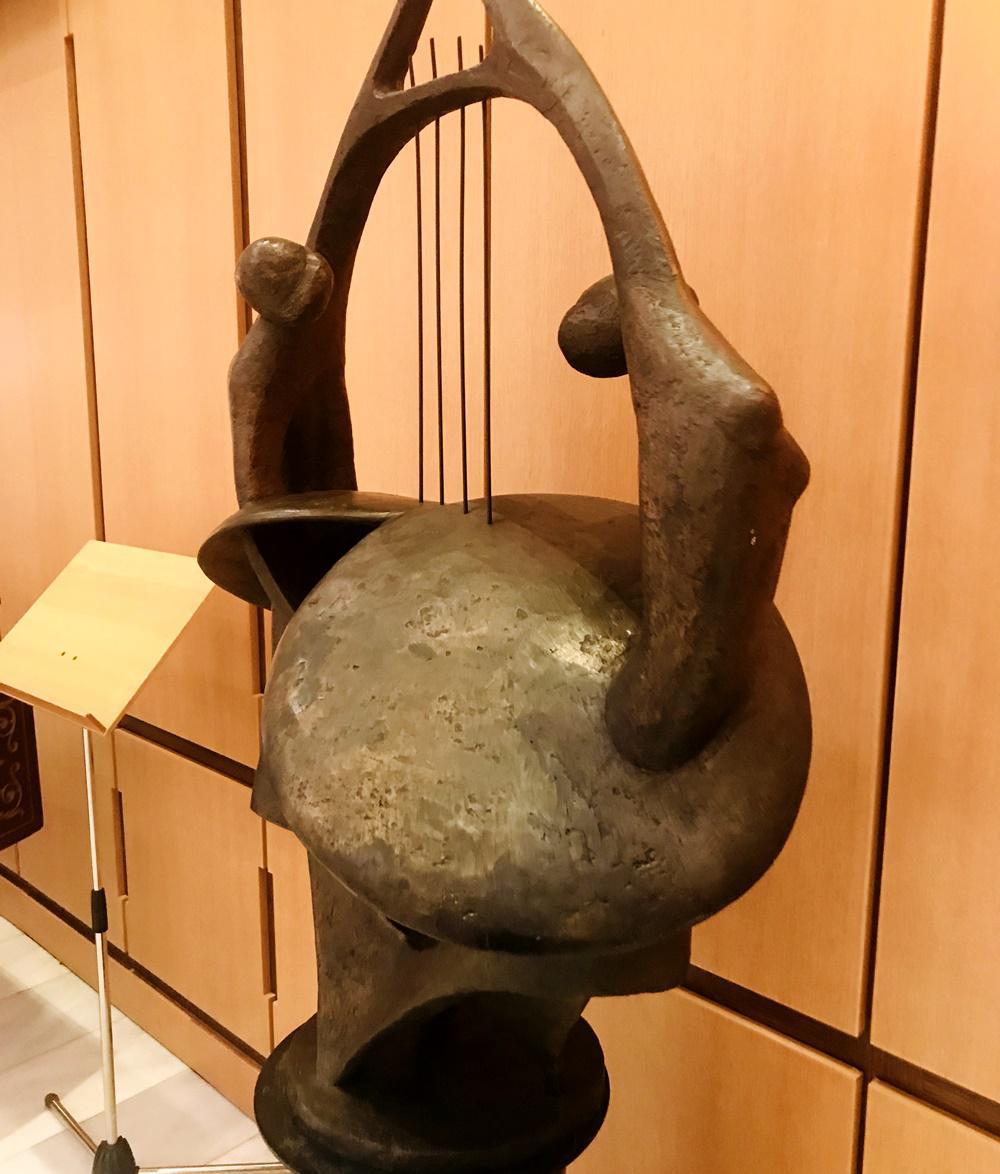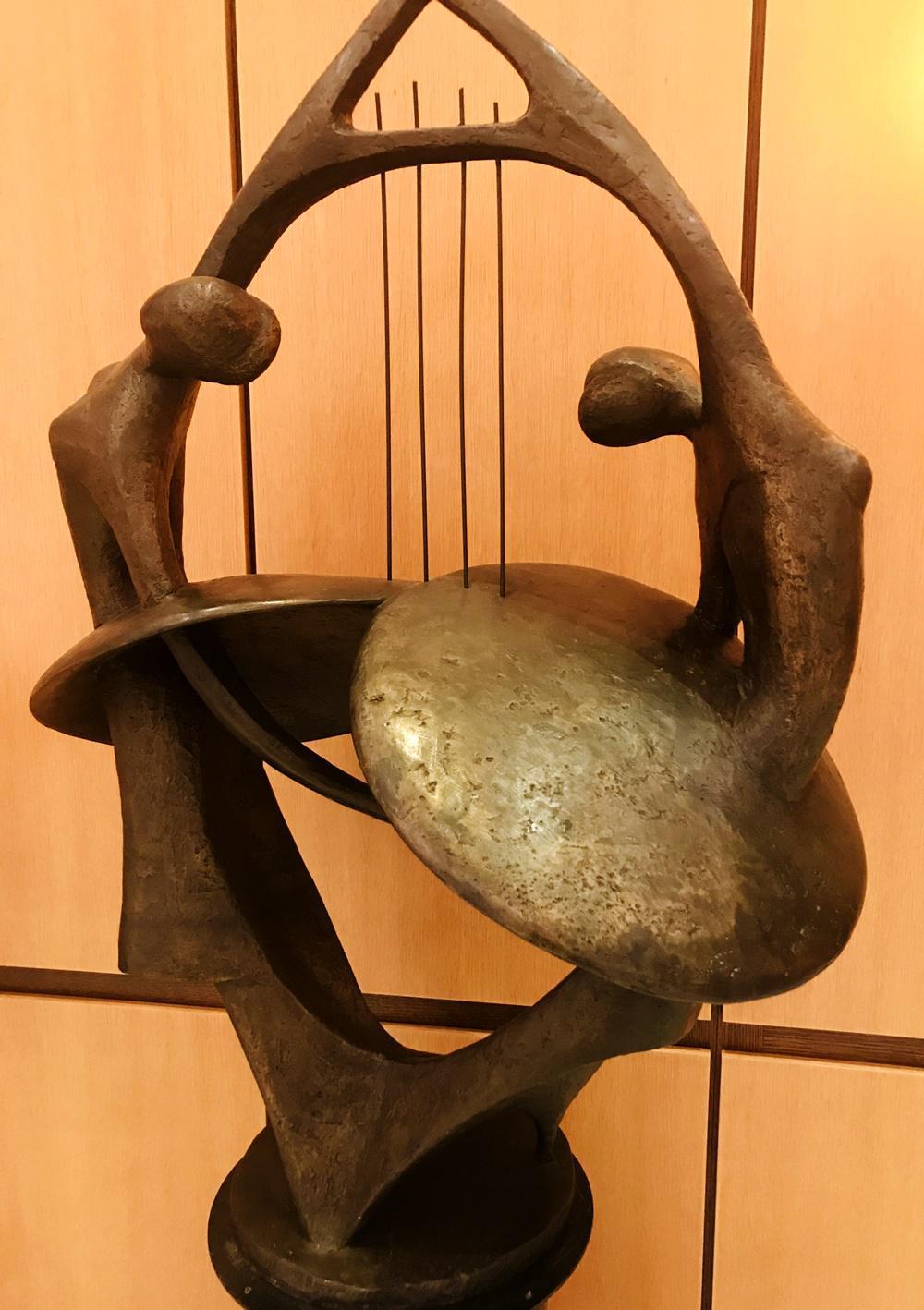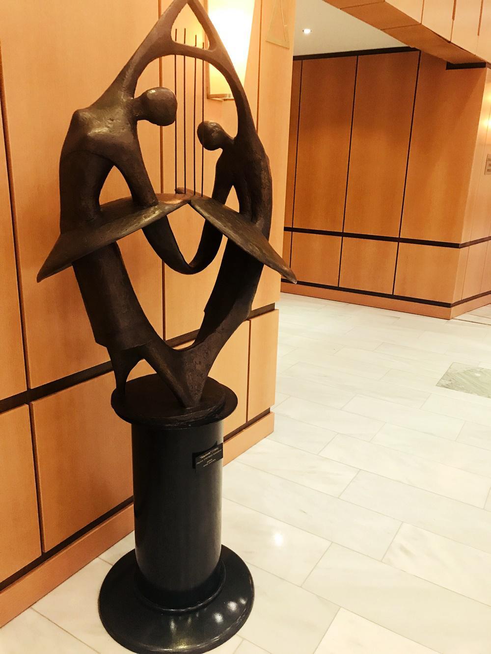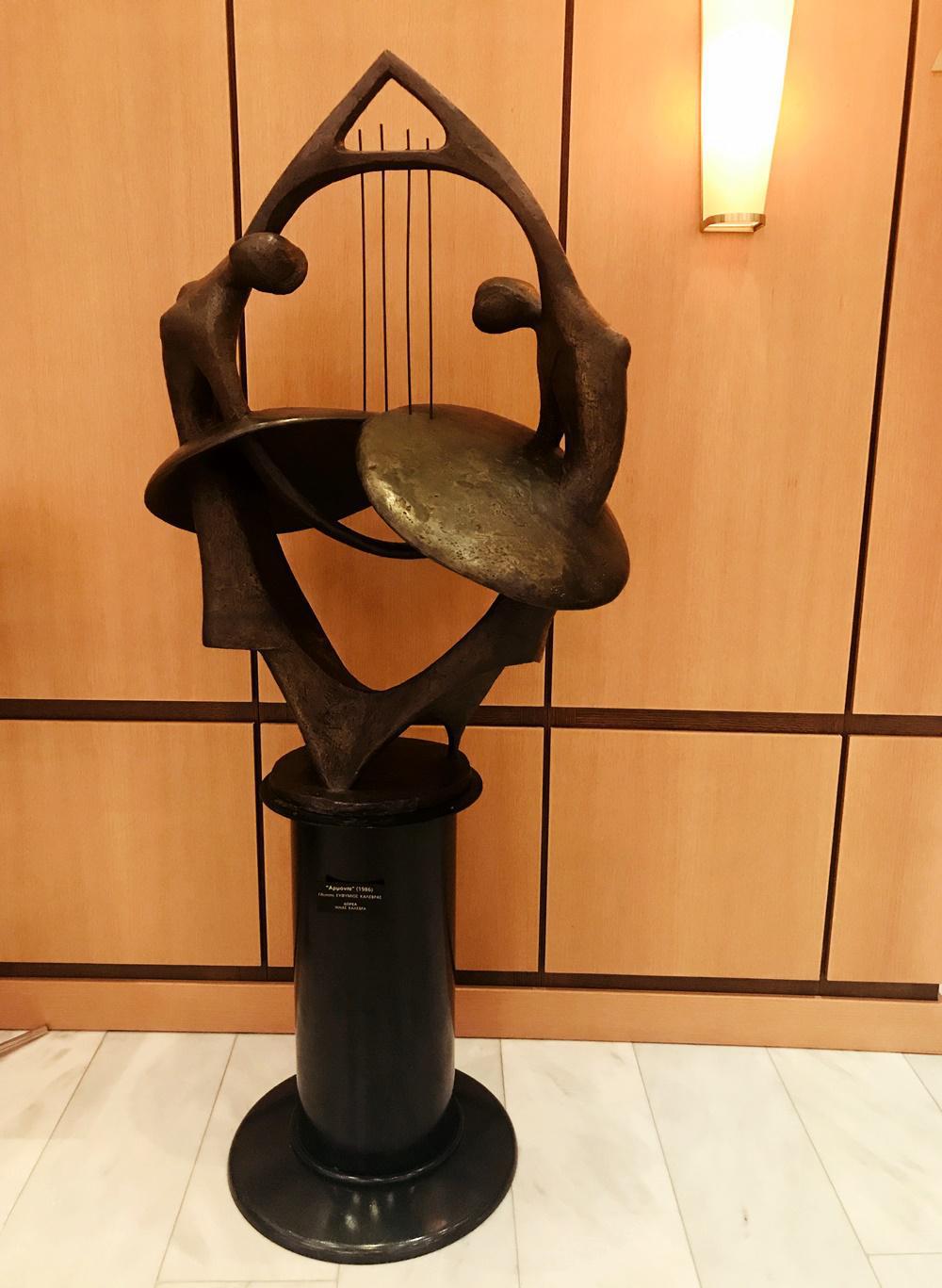Η «Αρμονία» κοσμεί τον χώρο έξω από την είσοδο του χώρου συναυλιών στο Μέγαρο Μουσικής Θεσσαλονίκης.