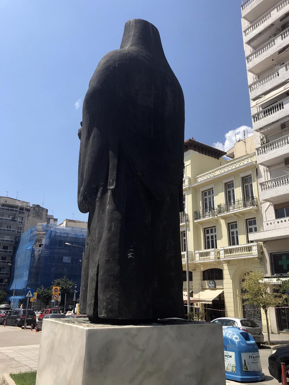 Στην Θεσσαλονίκη, το μνημειώδες άγαλμά του βρίσκεται στο κέντρο της πλατείας Αγίας Σοφίας.