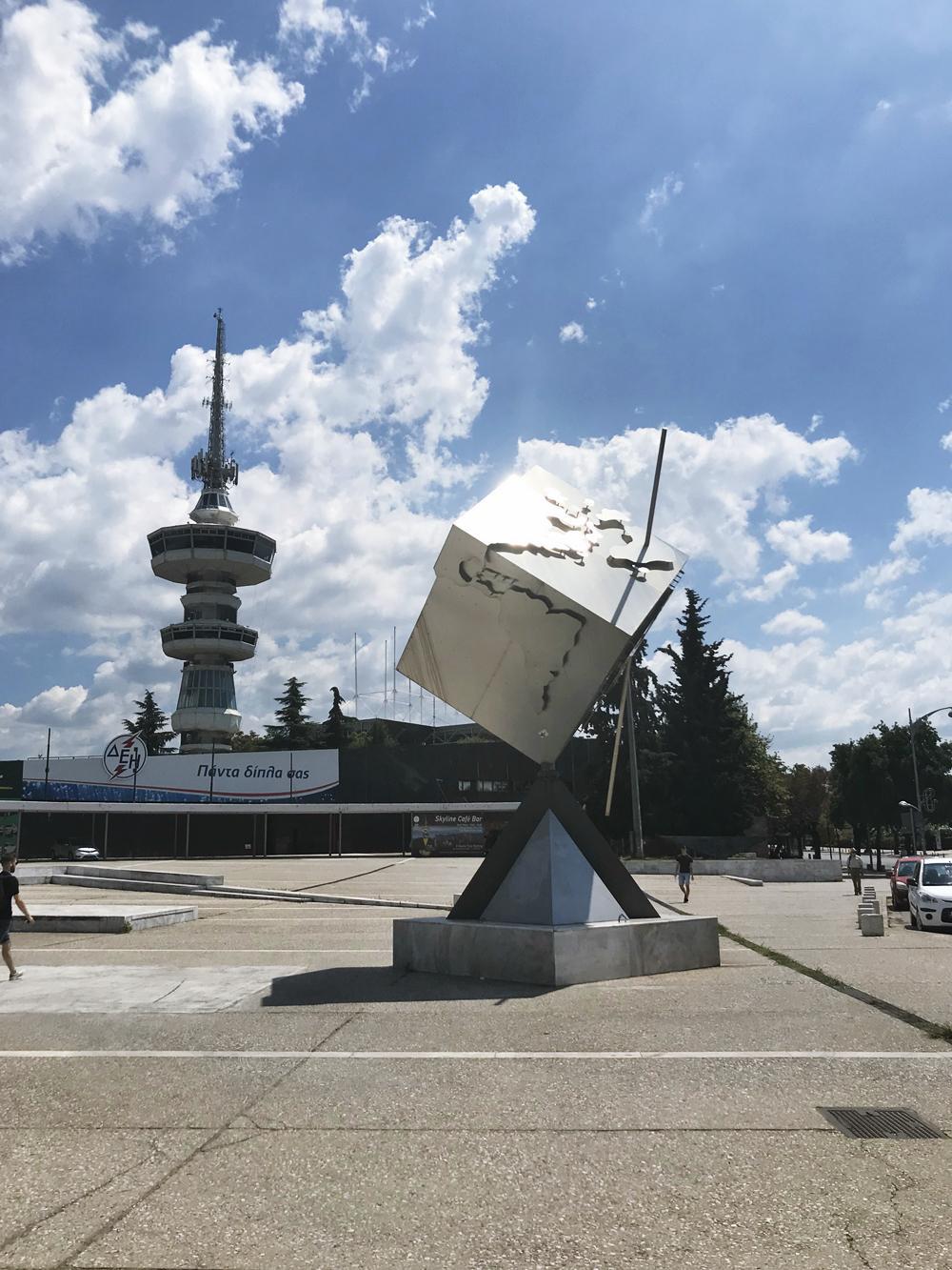 Στη νότια είσοδο της ΔΕΘ, απέναντι από την ΧΑΝΘ, μπορεί κανείς να θαυμάσει το εντυπωσιακό γλυπτό ύψους 10 μέτρων του Παύλου Κουγιουμτζή με τίτλο «Ο Κόσμος της Καινοτομίας».