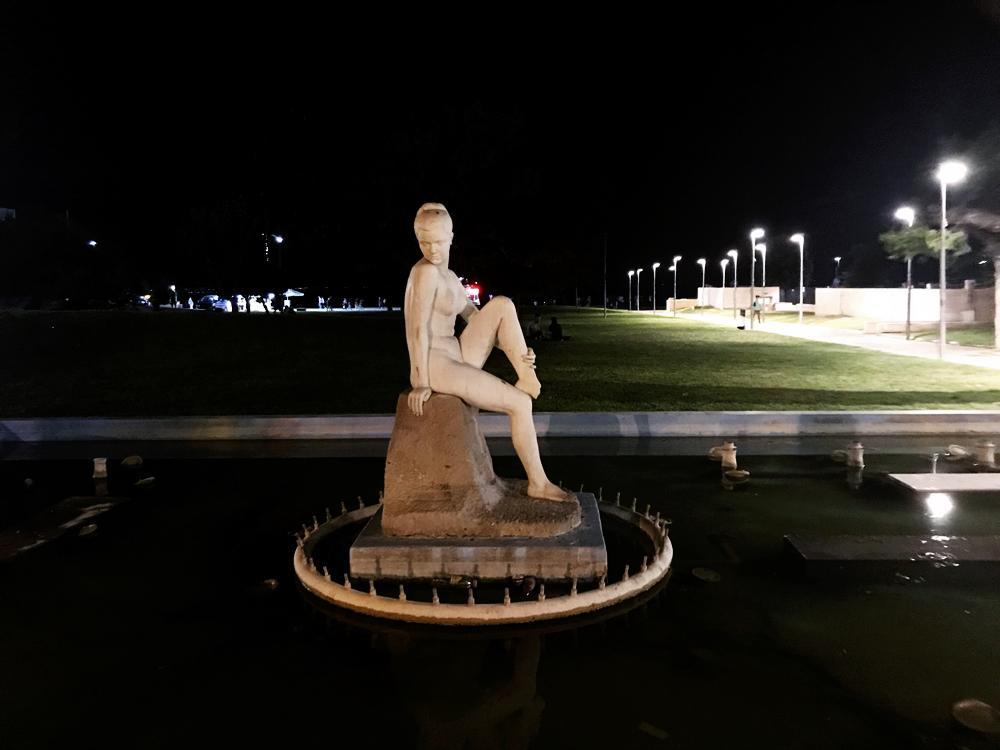 Ένα εκπληκτικής ομορφιάς άγαλμα, η λουόμενη γυναίκα, βρίσκεται σε σιντριβάνι, ανάμεσα στο Βασιλικό θέατρο και τον Λευκό Πύργο.