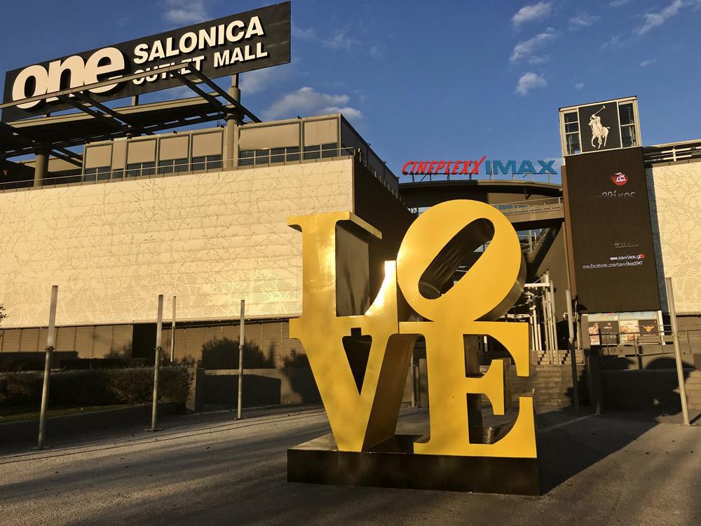 Μπορεί να μην είναι το αυθεντικό, παρόλα αυτά δεν χάνει την μαγεία και την γοητεία του. Είναι το γλυπτό LOVE στην είσοδο του εμπορικού κέντρου One Salonica, το οποίο προσελκύει δεκάδες τουρίστες και ντόπιους που φωτογραφίζονται δίπλα του.