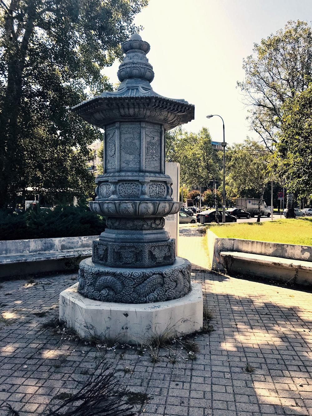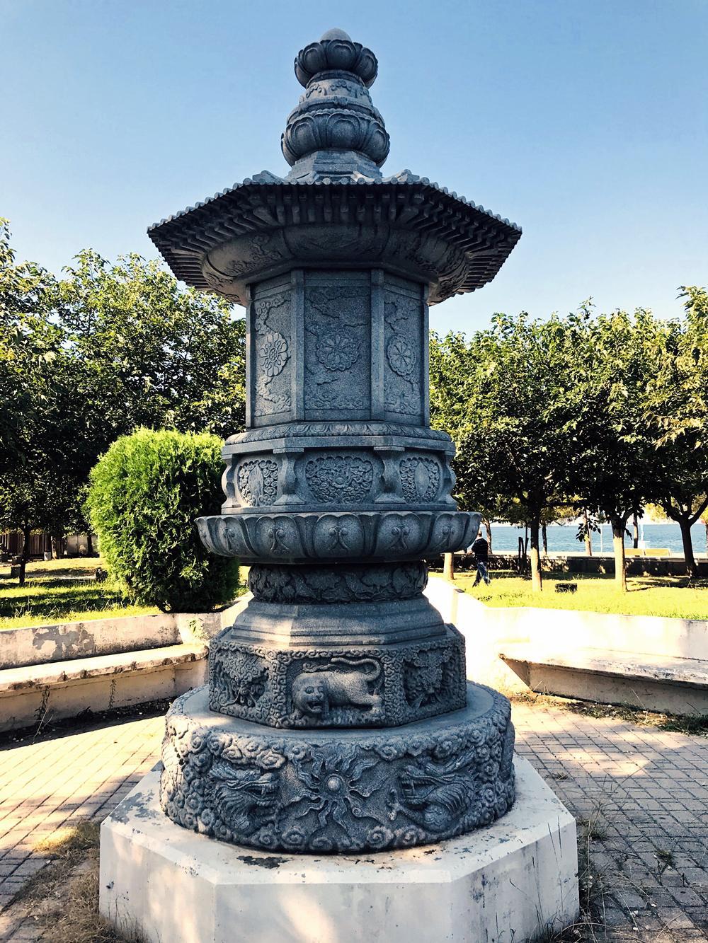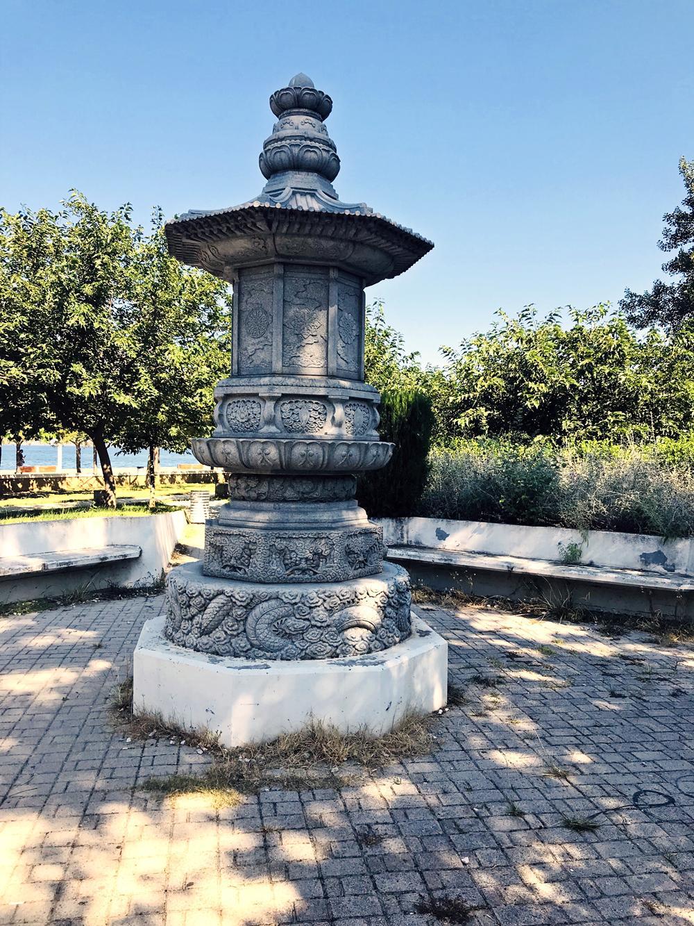 Κάτω από τις φυλλωσιές των δέντρων, με θέα την θάλασσα, μπορεί κανείς να απολαύσει την ηρεμία πλάι στο μνημείο, με την ελπίδα πως η παγόδα και ο συμβολισμός της θα επικρατήσουν.