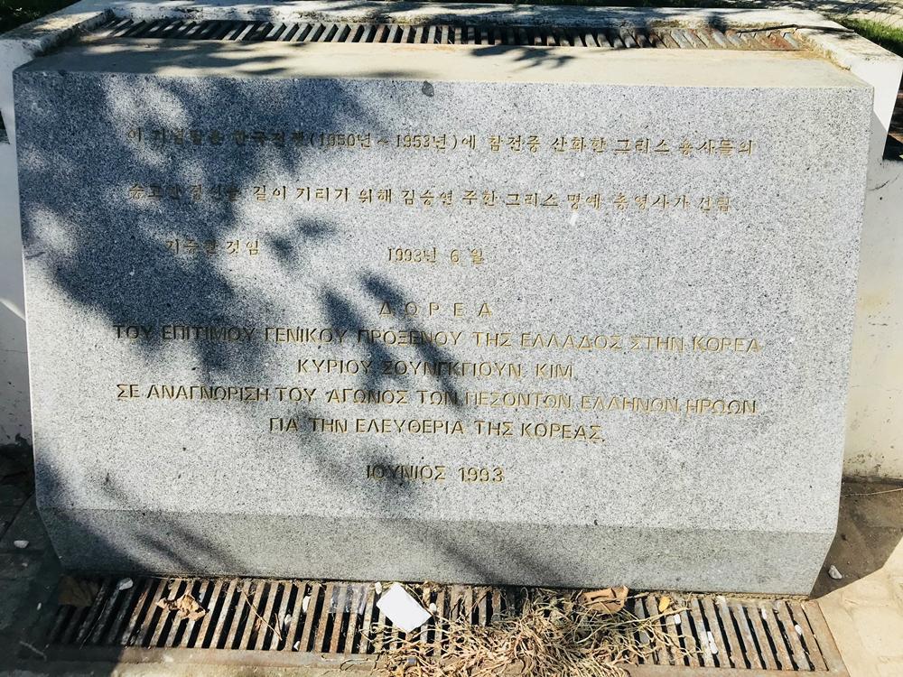 Πληθώρα αναφορών, τιμητικών διακρίσεων και παρασήμων έχουν δοθεί στην Ελλάδα για την συμμετοχή της στον πόλεμο. Μεταξύ άλλων, το 1993 ο Γενικός πρόξενος της Ελλάδας στην Κορέα, Ζουνγκγιούν Κιμ, κάνει μια δωρεά προς την πόλη της Θεσσαλονίκης και κατασκευάζει μια μαρμάρινη επιγραφή στην παραλία, στο ύψος της οδού Μπότσαρη, για να ευχαριστήσει την Ελλάδα. Έναν χρόνο αργότερα, το 1994, τοποθετήθηκε στο σημείο, επί δημαρχίας Κωνσταντίνου Κοσμόπουλου, το «Μνημείο πεσόντων στον πόλεμο της Κορέας». Την δαπάνη του έργου ανέλαβαν ο Σύνδεσμος Βετεράνων Πολεμιστών Κορέας Μακεδονίας Θράκης και ο ιερέας Κωνσταντίνος Χαλβατζάκης, που είχε πάρει μέρος στον κορεατικό πόλεμο και συνέδεσε το όνομά του με αυτόν.