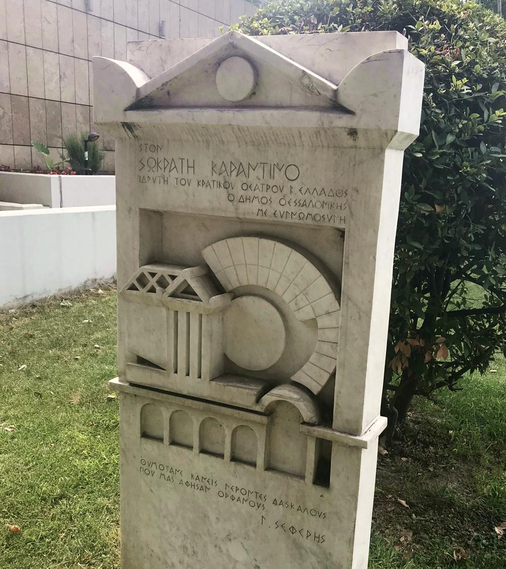 «Στον Σωκράτη Καραντινό, ιδρυτή του Κρατικού Θεάτρου Βορείου Ελλάδος, ο Δήμος Θεσσαλονίκης με ευγνωμοσύνη».