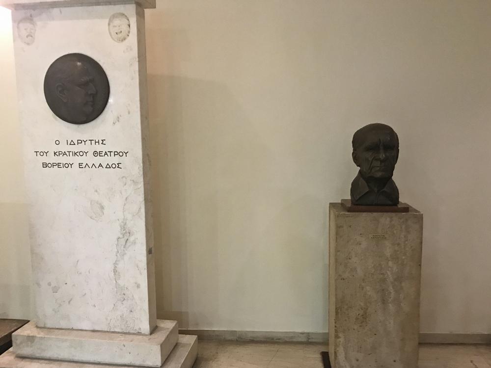 Προτομή του υπάρχει δεξιά της εισόδου, στην κεντρική σκηνή του Κρατικού Θεάτρου Βορείου Ελλάδος, στο κτίριο της Εταιρείας Μακεδονικών Σπουδών.