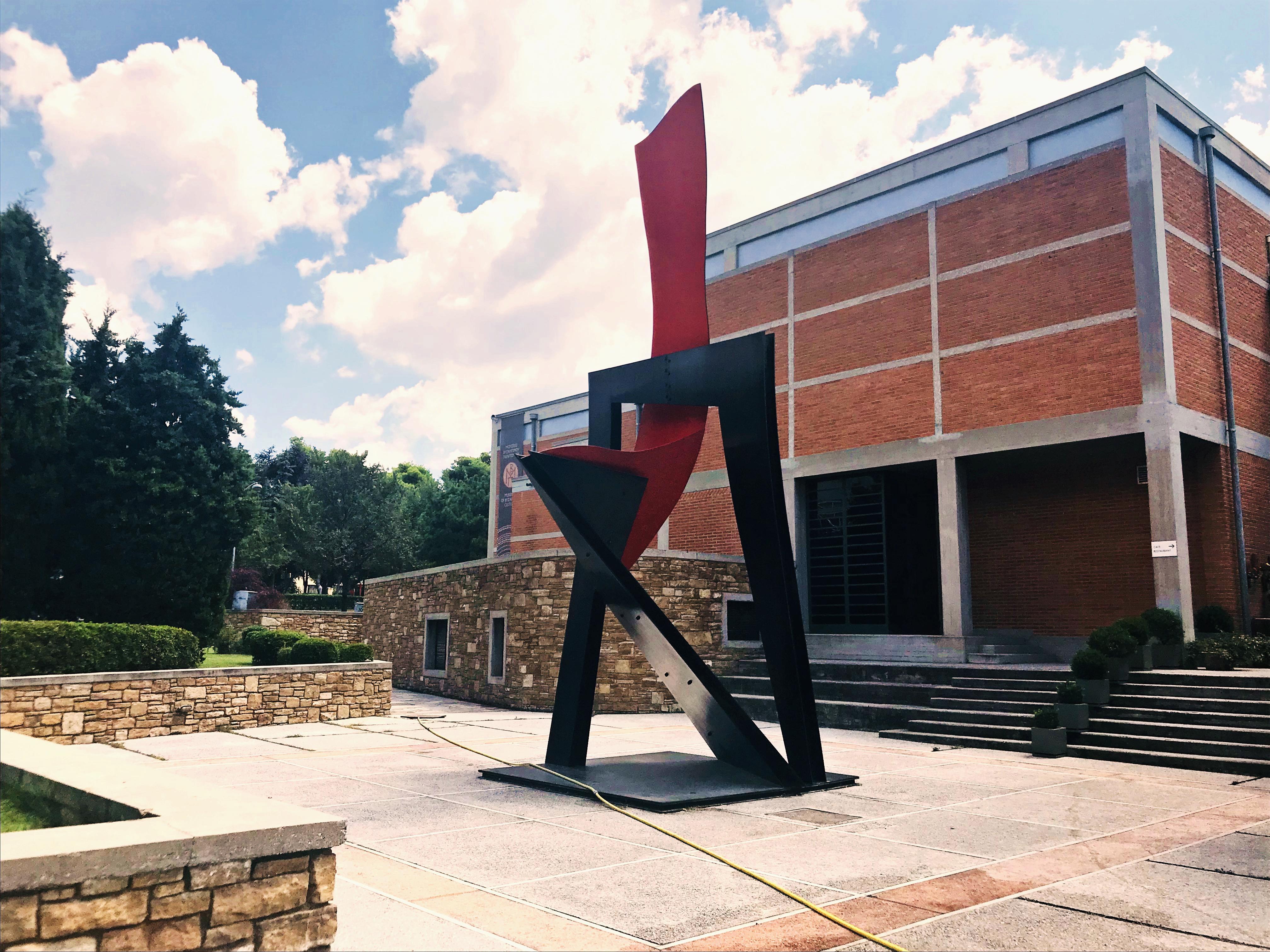 Μπορεί να μοιάζει παράταιρο, έχει όμως ενδιαφέρον το γεγονός πως στο Βυζαντινό μουσείο, στον προαύλιο χώρο, υπάρχουν έργα μοντέρνας τέχνης.