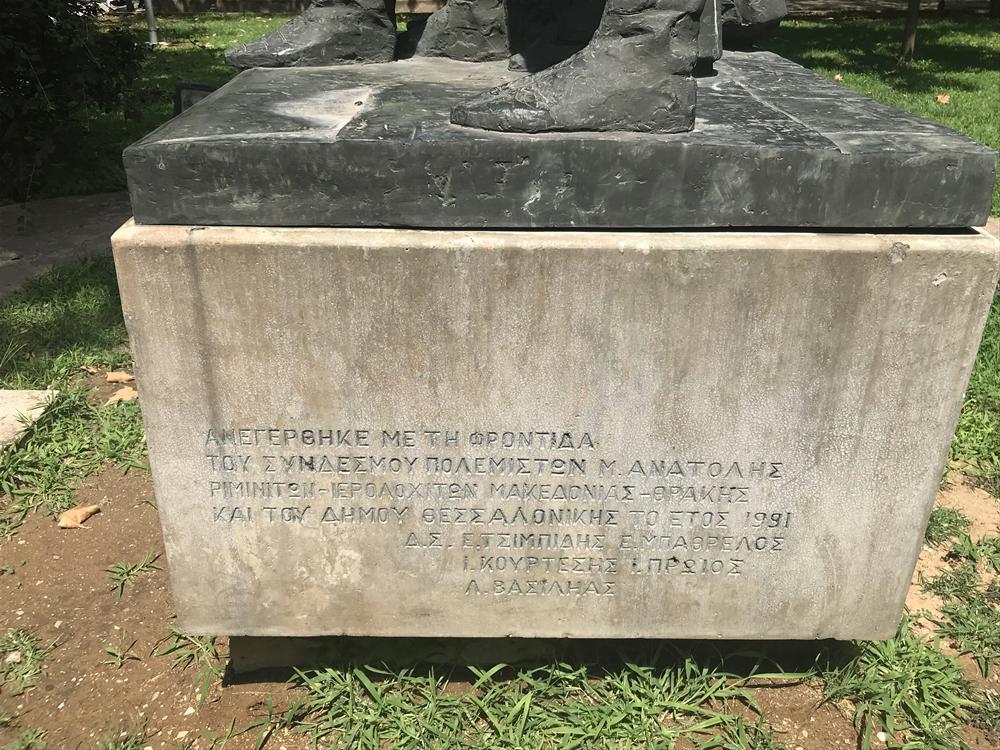 Πάνω στο βάθρο στο οποίο στέκονται υπάρχει μια επιγραφή: