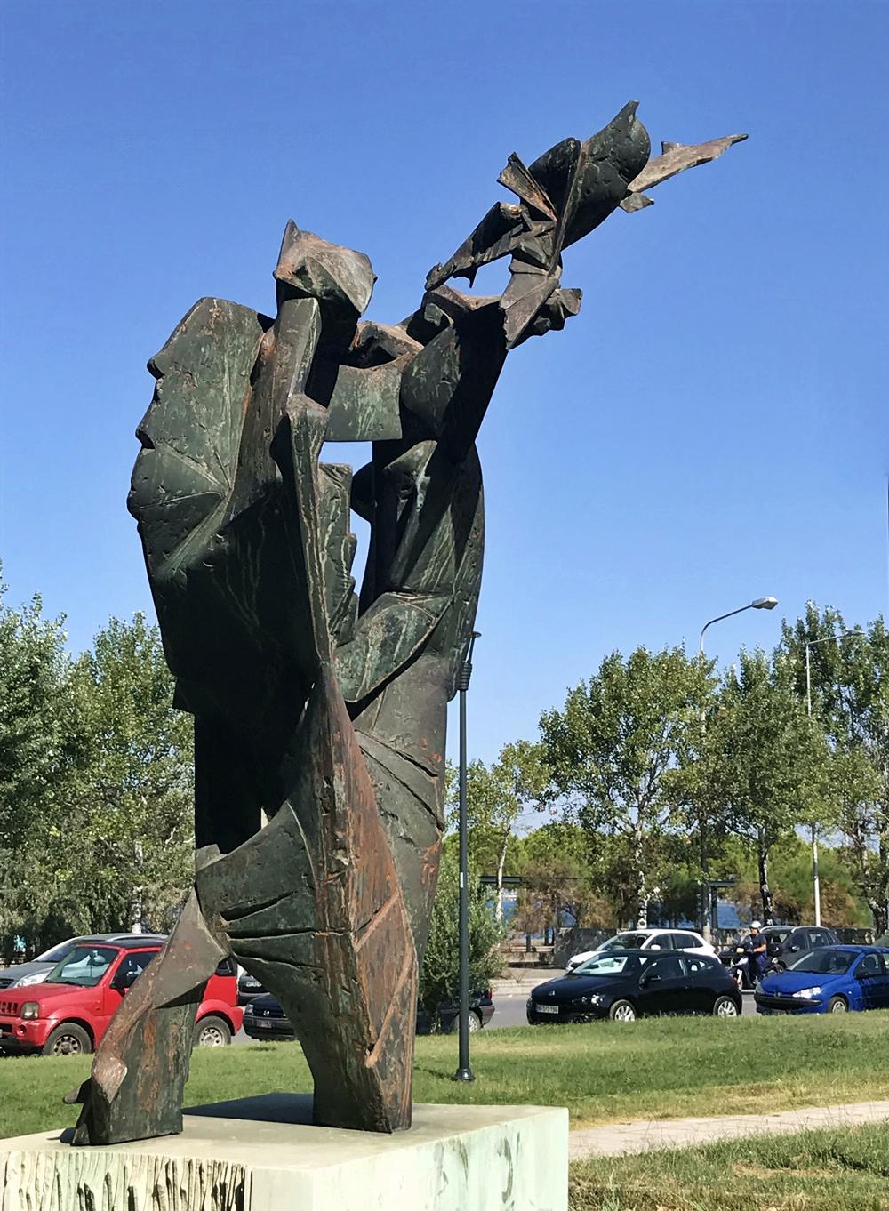 Στο πάρκο στο οποίο ενώνονται οι οδοί Μαρία Κάλλας (παραλιακή) και Γεωργίου Παπανδρέου, γνωστή και ως Ανθέων, βρίσκεται ένα από τα πολλά υπαίθρια αγάλματα που έχει σχεδιάσει ο γλύπτης Μανόλης Τζομπανάκης. Τοποθετήθηκε στο σημείο το 1974, είναι φτιαγμένο από ορείχαλκο, στο αφαιρετικό στυλ που μας έχει συνηθίσει από άλλα έργα του και απεικονίζει έναν άντρα και μια γυναίκα να κρατούν ένα περιστέρι που είναι έτοιμο να πετάξει. Το σώμα και τα χέρια βρίσκονται σε μια ανοδική κίνηση και ενώνονται με το περιστέρι που σύντομα θα απολαμβάνει την ελευθερία του, δίνοντας μια προοπτική ύψους και ενώνοντας τα τρία σώματα σε ένα.