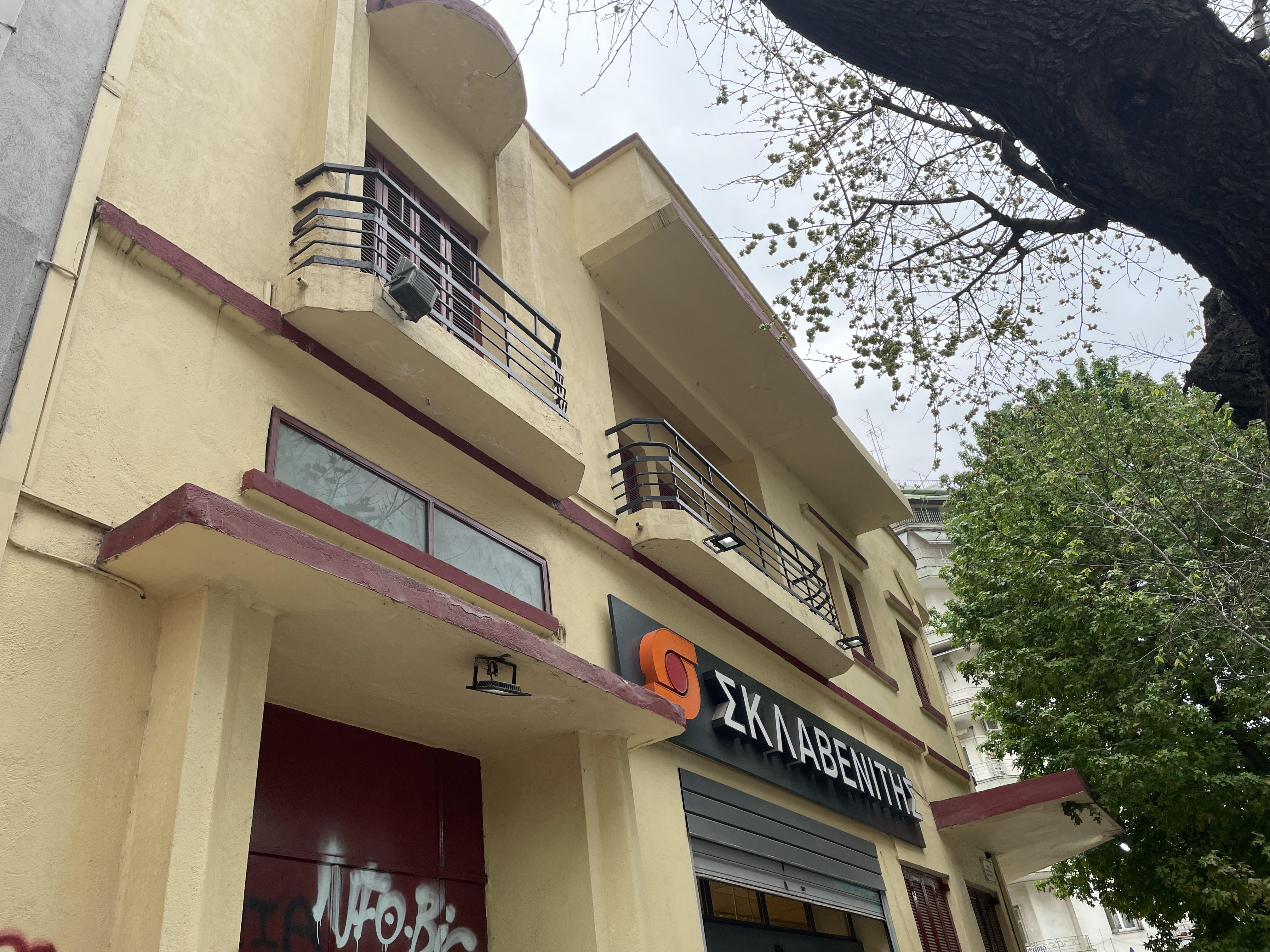 Αξιόλογο κτήριο με στοιχεία μοντερνισμού και επιρροές Art Deco γραμμικά διακοσμητικά στοιχεία, καμπύλες προεξοχές κ.λ.π.