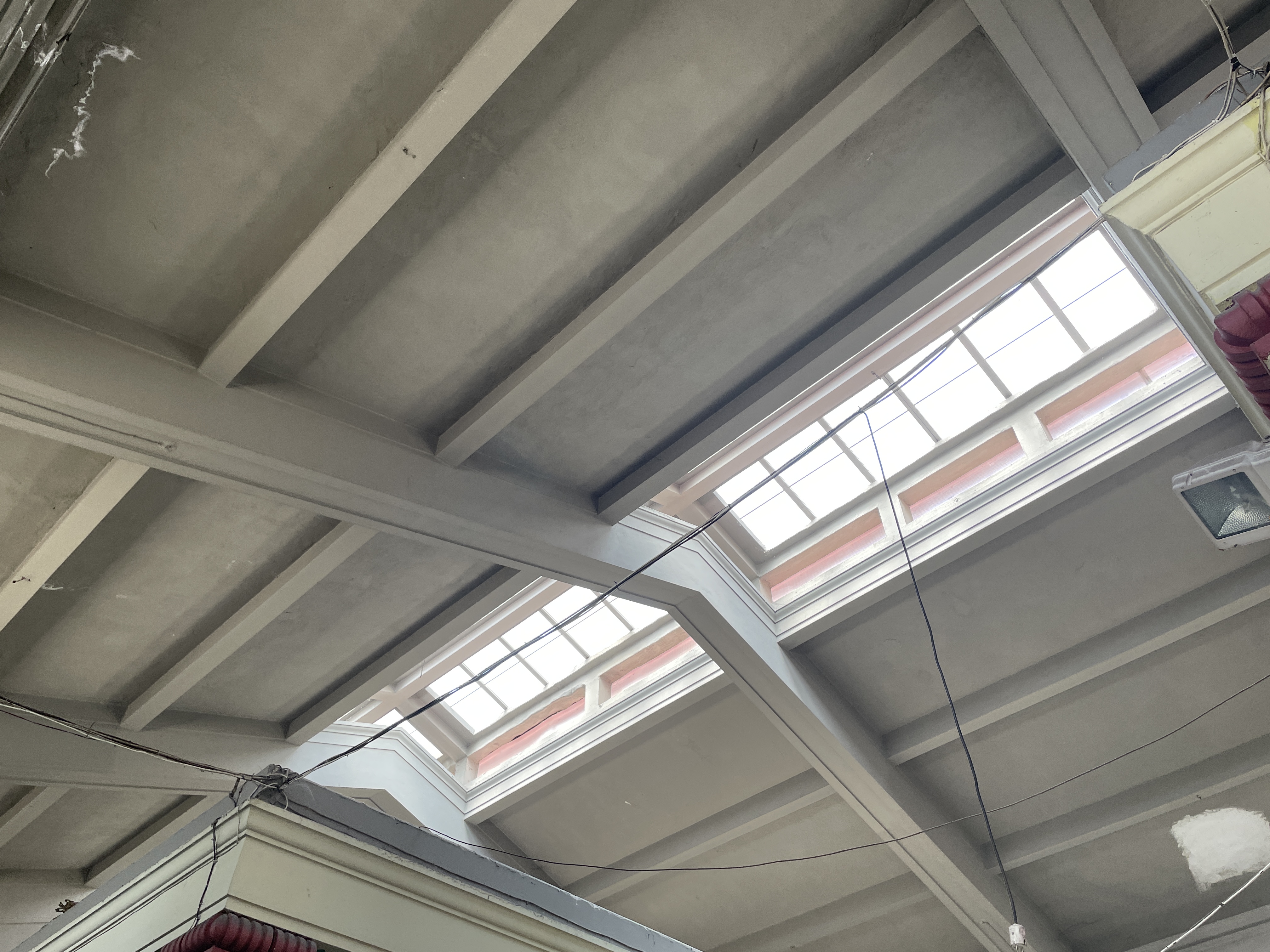 Το κεντρικό σημείο του τριγώνου στέγασης υπερυψώνεται και καλύπτεται από γυαλί ώστε να επιτρέπεται ο φωτισμός και ο αερισμός του χώρου. Στην όψη επί της Εγνατίας η αγορά κρύβεται πίσω από οικοδομή 4 ορόφων, ενώ η όψη επί της Πτολεμαίων αποτελείται ισόγειο και έναν όροφο. Στο εσωτερικό της αγοράς υπάρχουν 2 διάδρομοι αριστερά και δεξιά των κεντρικών κτιρίων.
