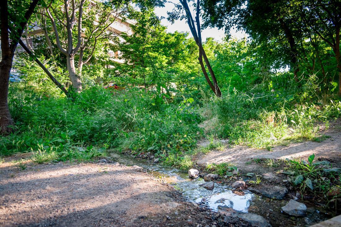 Πλάι στο παλιό εργοστάσιο και νυν κατάληψη. Στην Παπάφη. Ρυάκι και βλάστηση. Μια πραγματική όαση στην καρδιά της Τούμπας.