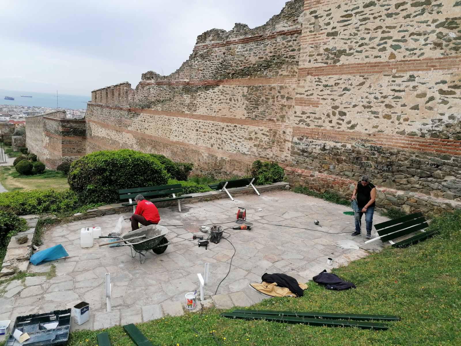 Εντατικοποιούνται οι παρεμβάσεις για την αποκατάσταση φθορών και την αναβάθμιση του αστικού εξοπλισμού σε κοινόχρηστους χώρους της πόλης από τις τεχνικές υπηρεσίες του Δήμου Θεσσαλονίκης.
