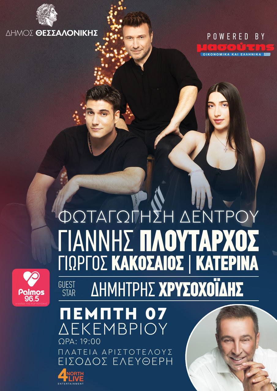Στο πλαίσιο της φωταγώγησης του χριστουγεννιάτικου δέντρου θα δώσει το παρών ο δημοφιλής τραγουδιστής Γιάννης Πλούταρχος με μια μοναδική συναυλία, στην οποία θα ερμηνεύσει όλες τις μεγάλες επιτυχίες του.