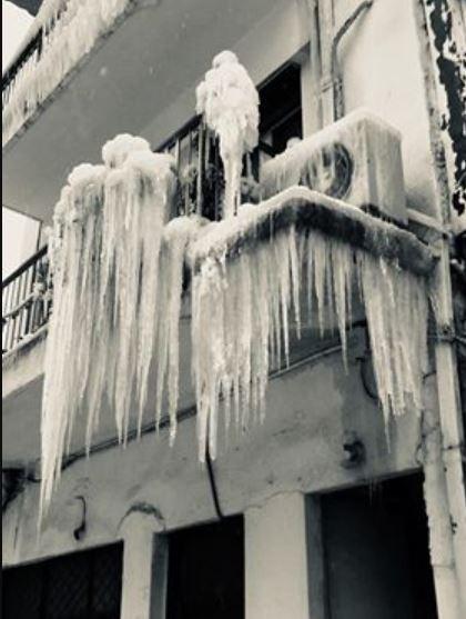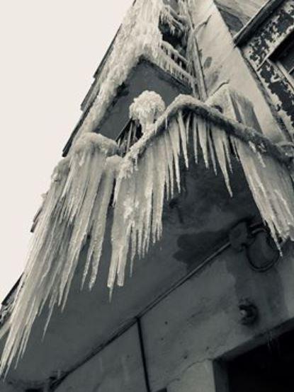 Τεράστιοι σταλακτίτες στα μπαλκόνια μεταμορφώνουν το κτίσμα σε σκηνικό του Game of Thrones, και η προσοχή που απαιτείται πλέον είναι επιτακτική.