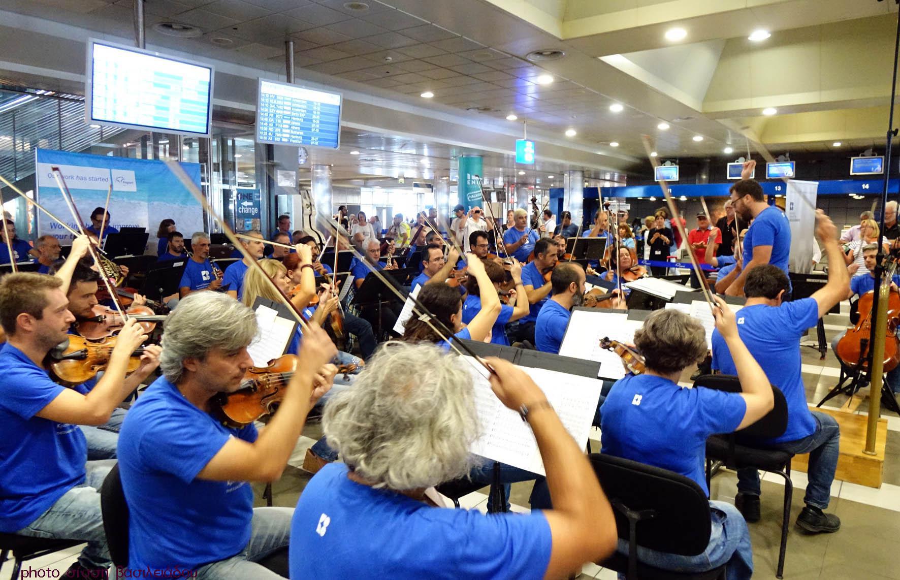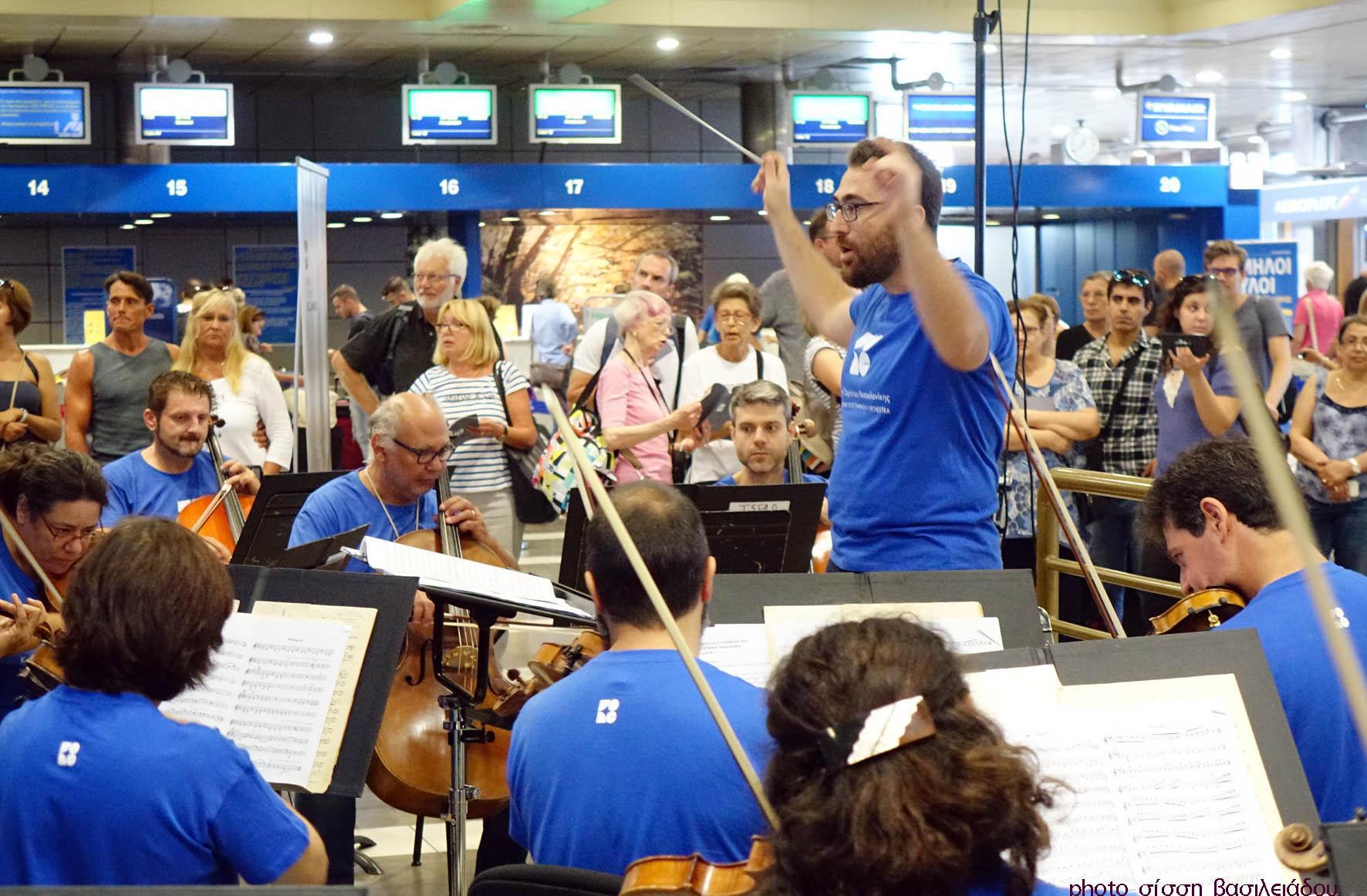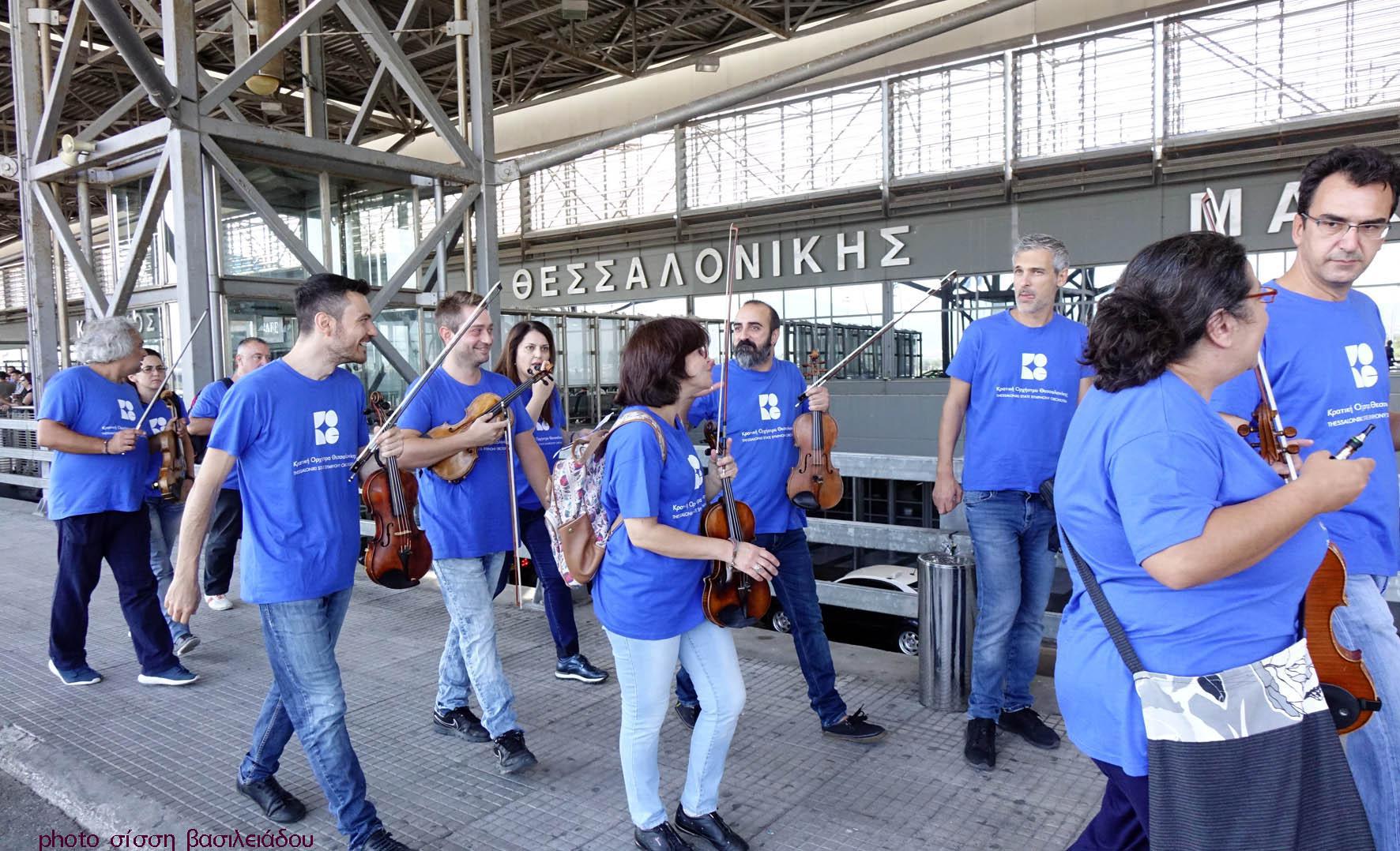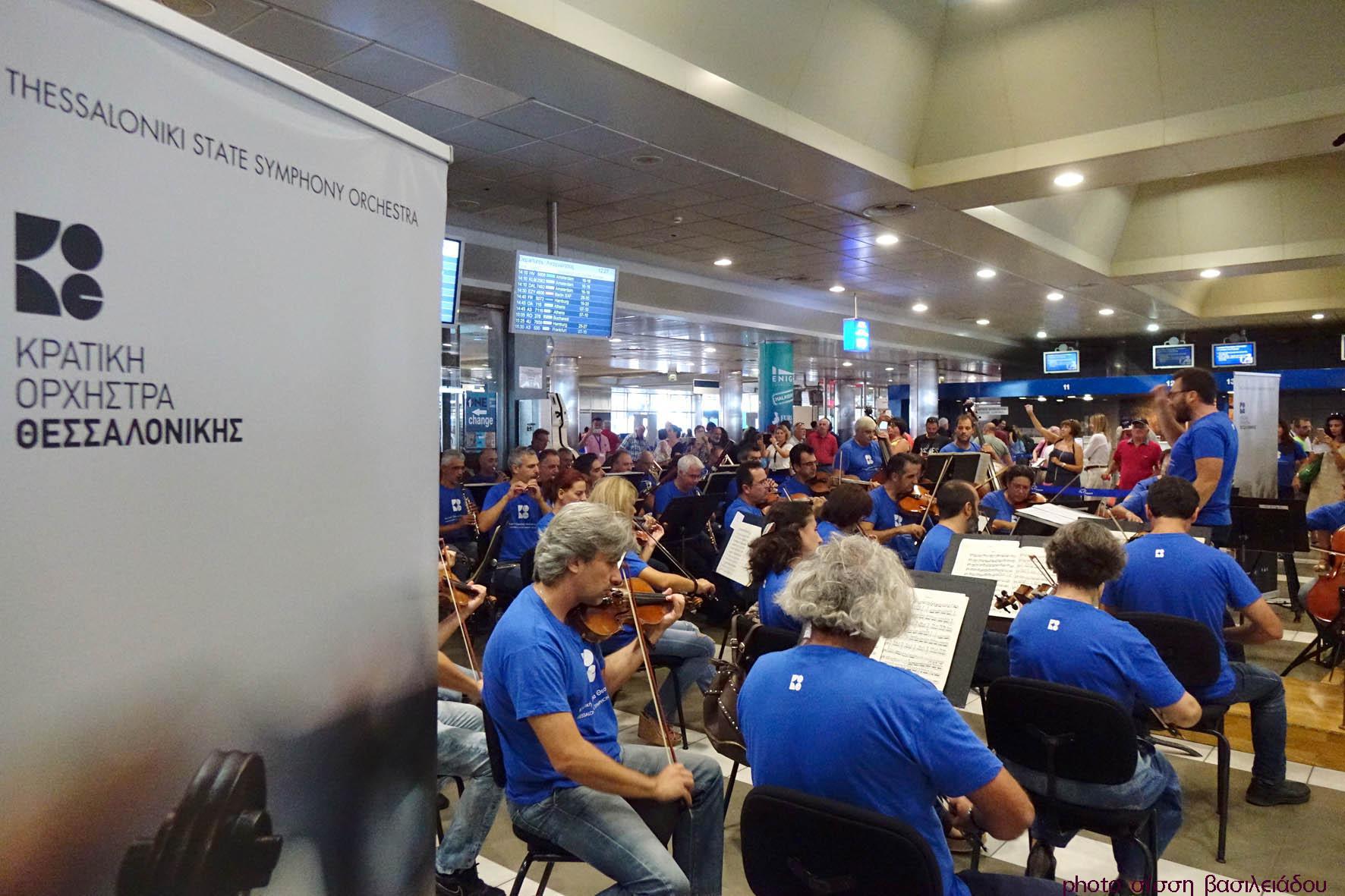 Μία ιδιαίτερα ευχάριστη έκπληξη περίμενε σήμερα το μεσημέρι όσους αναχωρούσαν από το αεροδρόμιο ‘Μακεδονία’ της Θεσσαλονίκης. Η Κρατική Ορχήστρα Θεσσαλονίκης, σε συνεργασία με την Fraport Greece, αποχαιρέτησε τους επιβάτες με ένα Farewell Concert στο χώρο αναχωρήσεων Β’ του αεροδρομίου προσφέροντας μία όμορφη τελευταία ανάμνηση από την πόλη της Θεσσαλονίκης.
