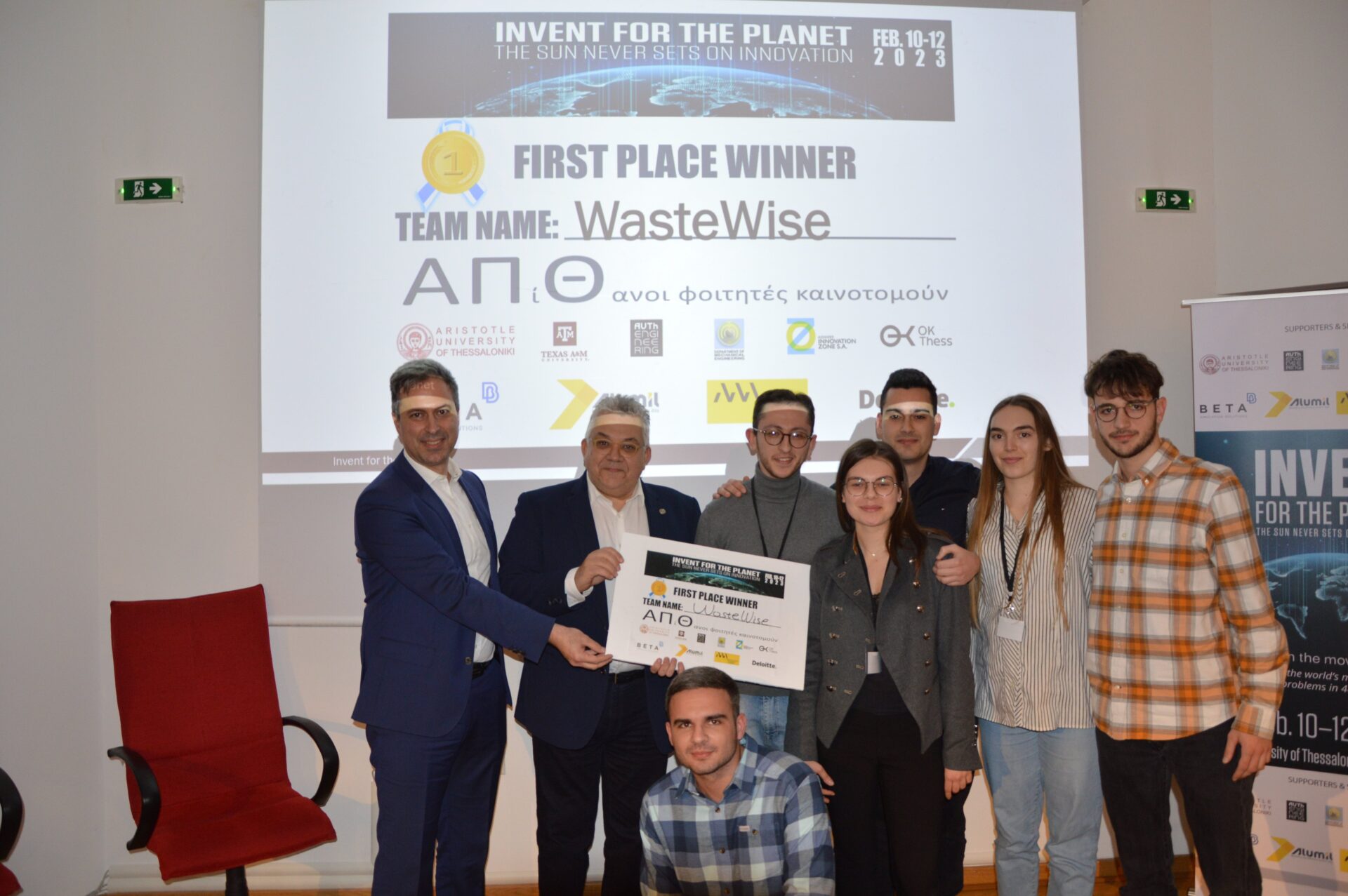 Την πρώτη θέση κατέλαβε η ομάδα WasteWise, η οποία εργάστηκε πάνω στο τρίτο θέμα και με σύνθημα «From trash to treasure: the WasteWise way» ανέπτυξε μία καινοτόμα λύση για χρήση των αποβλήτων της βιομηχανίας γαρίδας για παραγωγή προϊόντων υψηλής προστιθέμενης αξίας με ευρεία χρήση εφαρμογών. Τα μέλη της ομάδας τα οποία θα διεκδικήσουν μία θέση στον τελικό που θα πραγματοποιηθεί στο Τέξας των ΗΠΑ, στις αρχές Απριλίου 2023, είναι οι: Αντωνόπουλος Κωνσταντίνος, Βαρδούλης Ιωάννης, Βουλκόπουλος Ξενοφών, Κολιούση Αικατερίνη, Μελιτος Γιώργος και Όψιμου Ελένη. Το βραβείο απένειμε ο Πρύτανης του ΑΠΘ, Καθηγητής Νικόλαος Γ. Παπαϊωάννου.