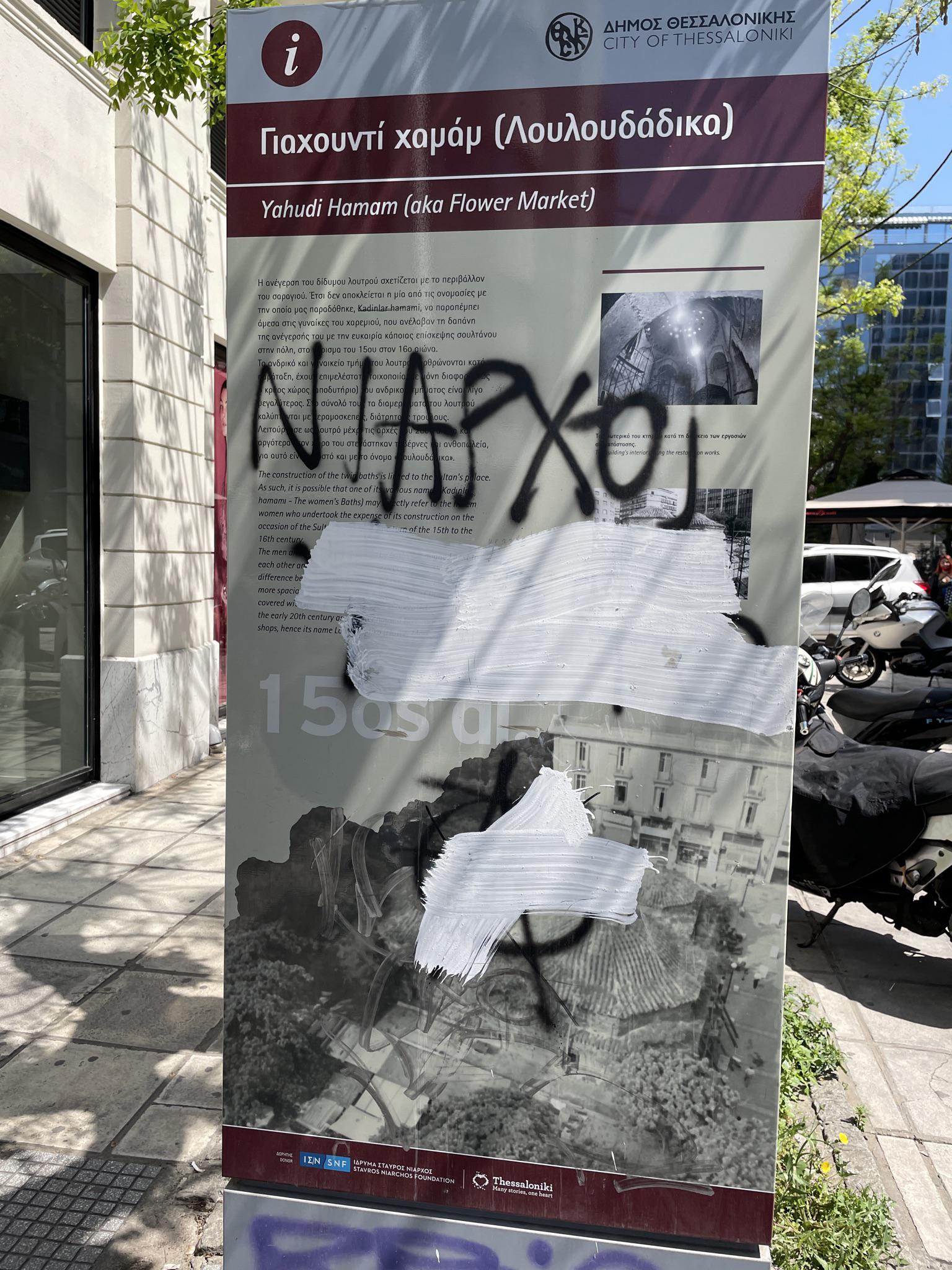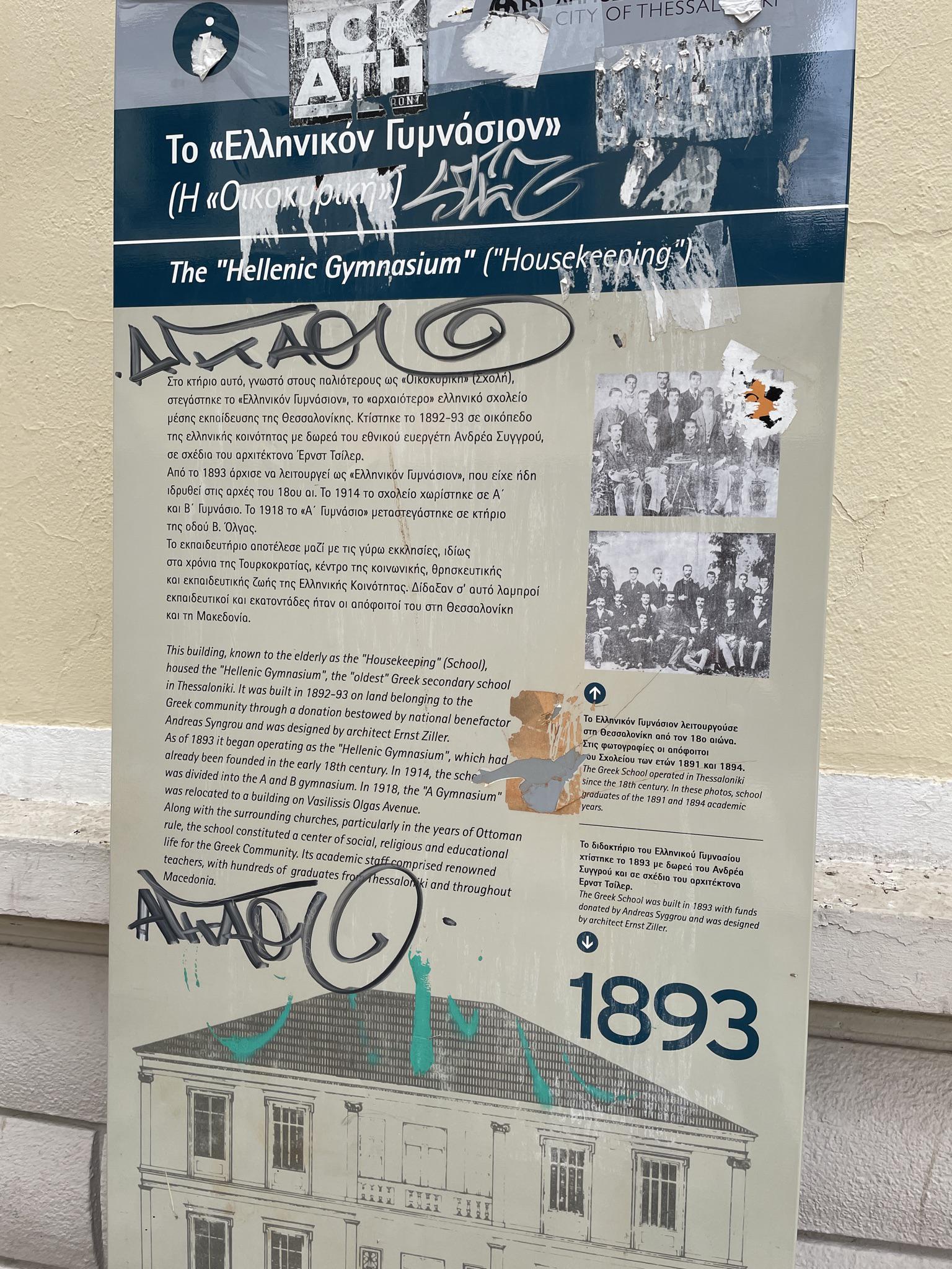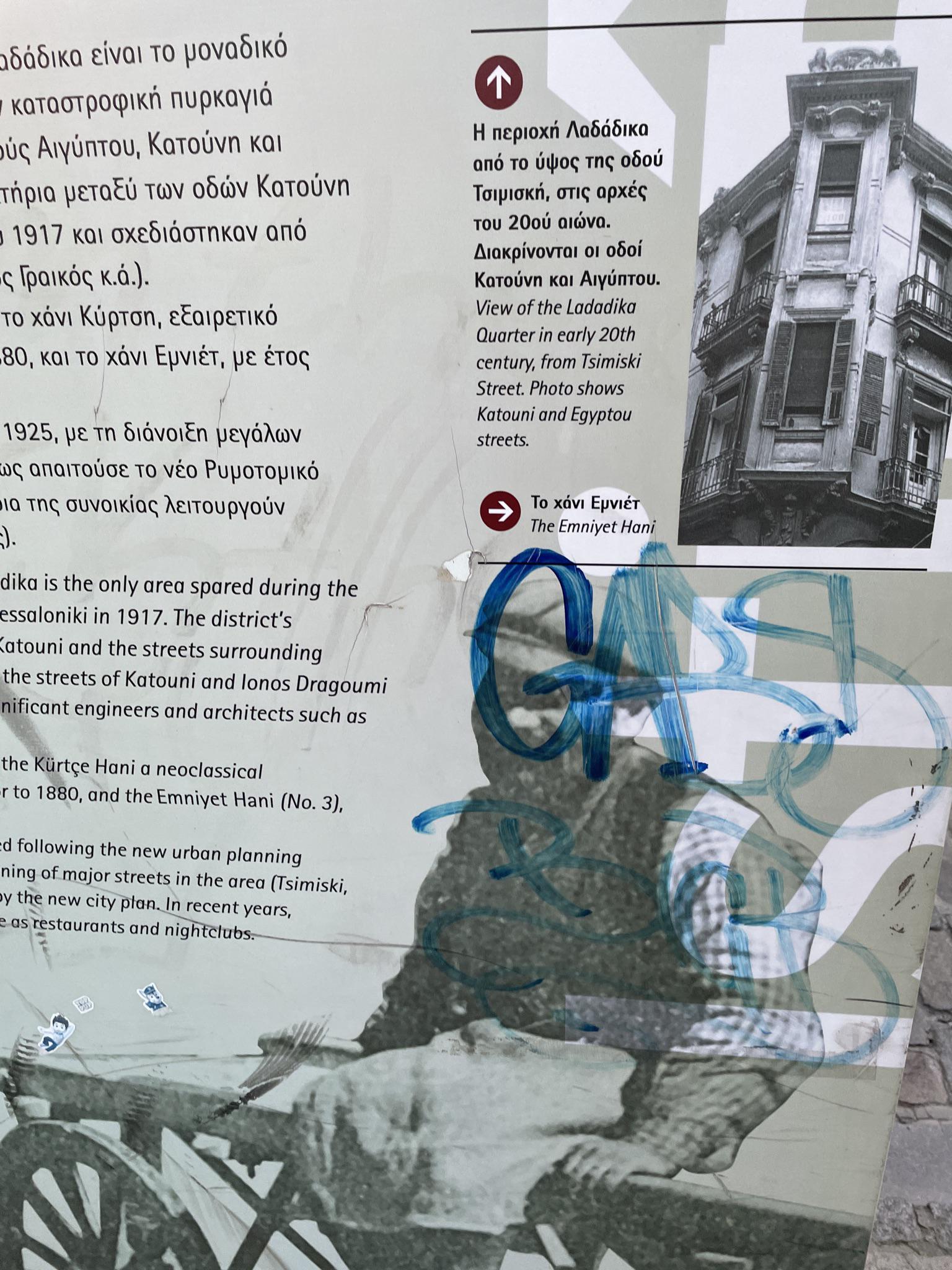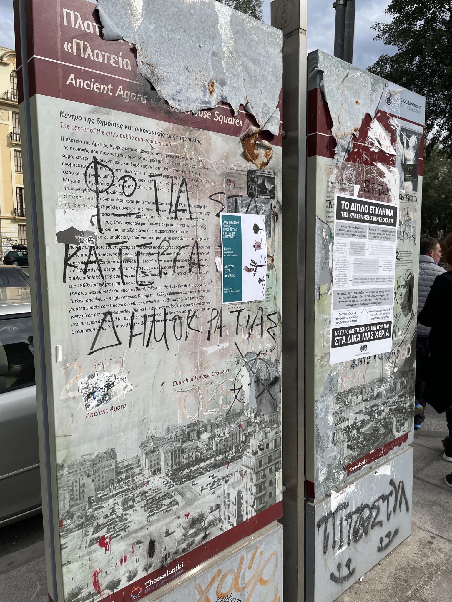Θα ήταν περίεργο όμως σε μια πόλη που ο βανδαλισμός είναι η χρόνια επιδημία της, αρκετά από αυτά να μην είχαν καταλήξει μια σιδερένια μάζα από μουντζούρες δίπλα σε ένα σημαντικό μνημείο υποβαθμίζοντας το μνημείο και στερώντας ουσιαστικά τους επισκέπτες από την πληροφορία.