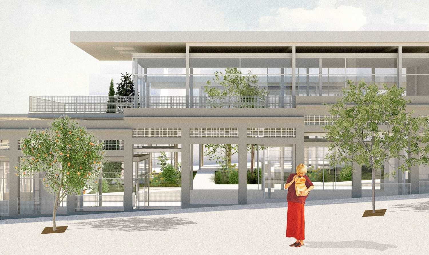Η πρόταση αφορά τον συνολικό ανασχεδιασμό της αγοράς και την αναβάθμιση του περιβάλλοντος δημόσιου χώρου. Το κτήριο οργανώνεται σε τρία επίπεδα, ώστε να ακολουθεί την κλίση του εδάφους και να εξασφαλίζει πρόσβαση από όλες τις πλευρές.