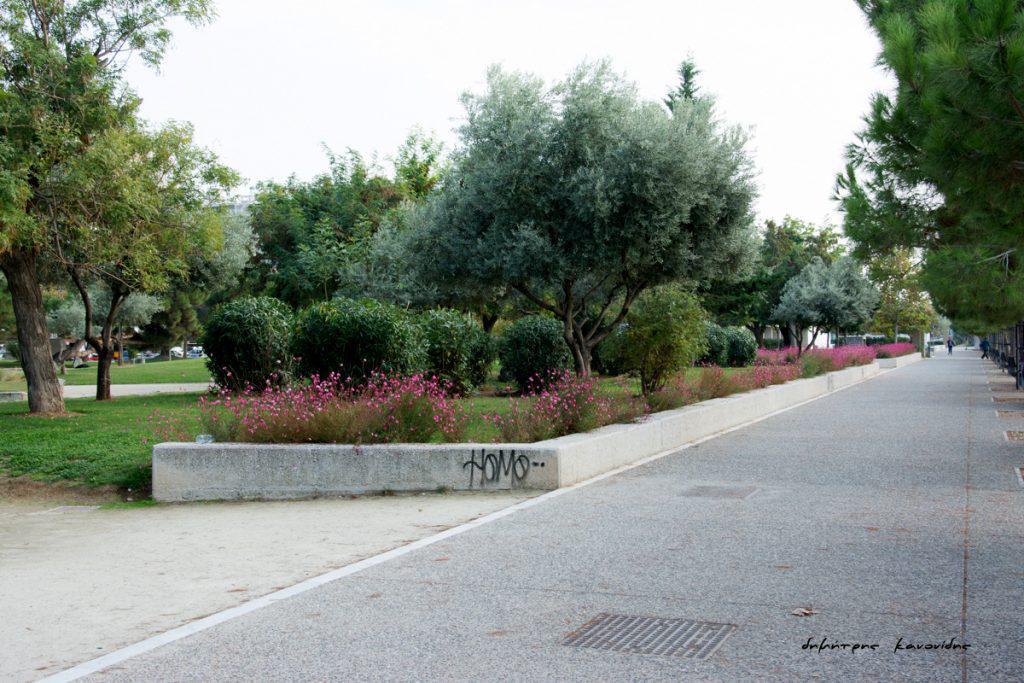 Μουτζουρωμένοι τοίχοι, παγκάκια, κατασκευές στο χώρο, γυάλινα περίπτερα, παιδικές χαρές, χώροι εκγύμνασης, έχουν δεχθεί βανδαλισμούς δημιουργώντας μια εικόνα απαράδεκτη που δημιουργεί αποστροφή.