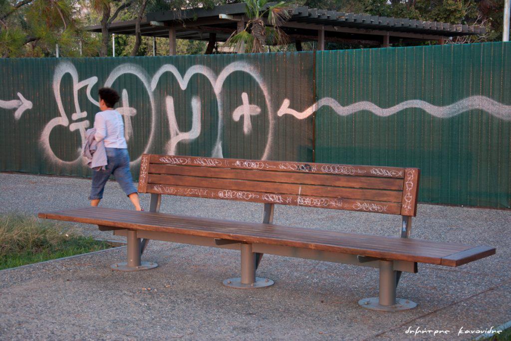 Μάταια οι «Φίλοι της Νέας Παραλίας» κατά καιρούς φροντίζουν να αποκαθιστούν τις ζημιές. Οι βάνδαλοι επανέρχονται.