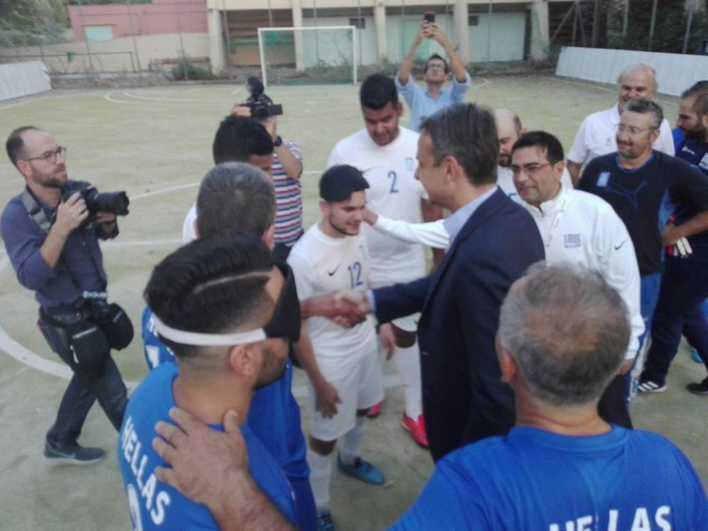 Αποκλειστικές εικόνες και video: Η επίσκεψη του πρωθυπουργού Κυριάκου Μητσοτάκη στην εθνική ομάδα τυφλών ποδοσφαιριστών