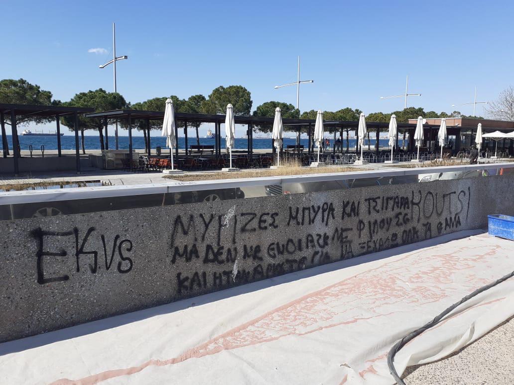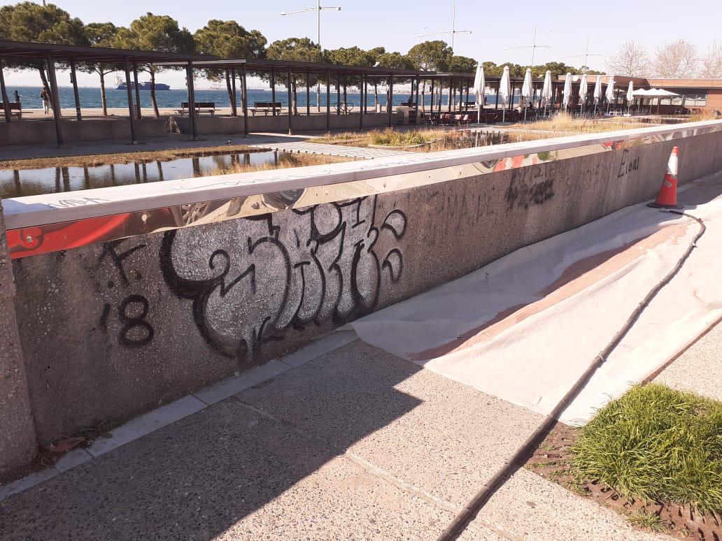 Ενώ η πόλη βρίσκεται σε καραντίνα σε αρκετά σημεία του δημόσιου χώρου της με πρωτοβουλία του δήμου Θεσσαλονίκης μουτζούρες, συνθήματα και γκράφιτι απομακρύνονται συστηματικά από επιφάνειες και αποκαθίσταται η αισθητική αρτιότητα του αστικού περιβάλλοντος και η πόλη “ανασαίνει’.