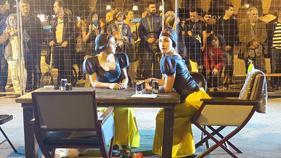 Ήταν μια διαφορετική βραδιά στην πλατεία. Από τις 19.00 θα απολαύσουμε που ξεκίνησε η performance “Snow white” της Γαλλίδας Catherine Baÿ και μέχρι τις 22.00 που ολοκληρώθηκε το κοινό μυήθηκε σε κάτι εντελώς διαφορετικό βασισμένο γλώσσα του σώματος.