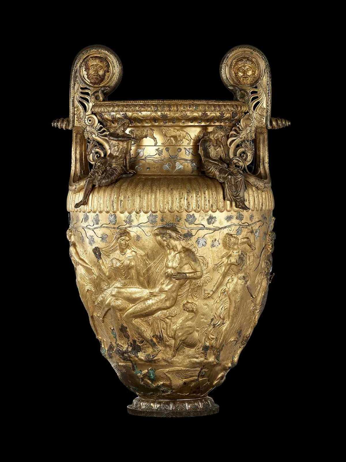 Αρκεί να αναφέρουμε τον περίφημο Κρατήρα του Δερβενίου, το ψηφιδωτό δάπεδο με διονυσιακή σκηνή από πολυτελή οικία της Θεσσαλονίκης, αττικές σαρκοφάγους με παράσταση τρύγου, αγάλματα και βέβαια πλήθος συμποτικών σκευών και αγγείων σερβιρίσματος, αποθήκευσης και διακίνησης του οίνου.