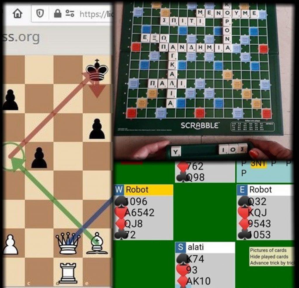 Κίνηση ματ, λέξεις με 7 γράμματα και …ατού. Όροι διαφορετικοί μεταξύ τους, που παραπέμπουν σε σκάκι, σκραμπλ και μπριτζ, μ’ ένα ωστόσο κοινό χαρακτηριστικό. Αφορούν παιχνίδια που εν μέσω πανδημίας απέκτησαν ακόμη περισσότερους φίλους, με τη βοήθεια του διαδικτύου.