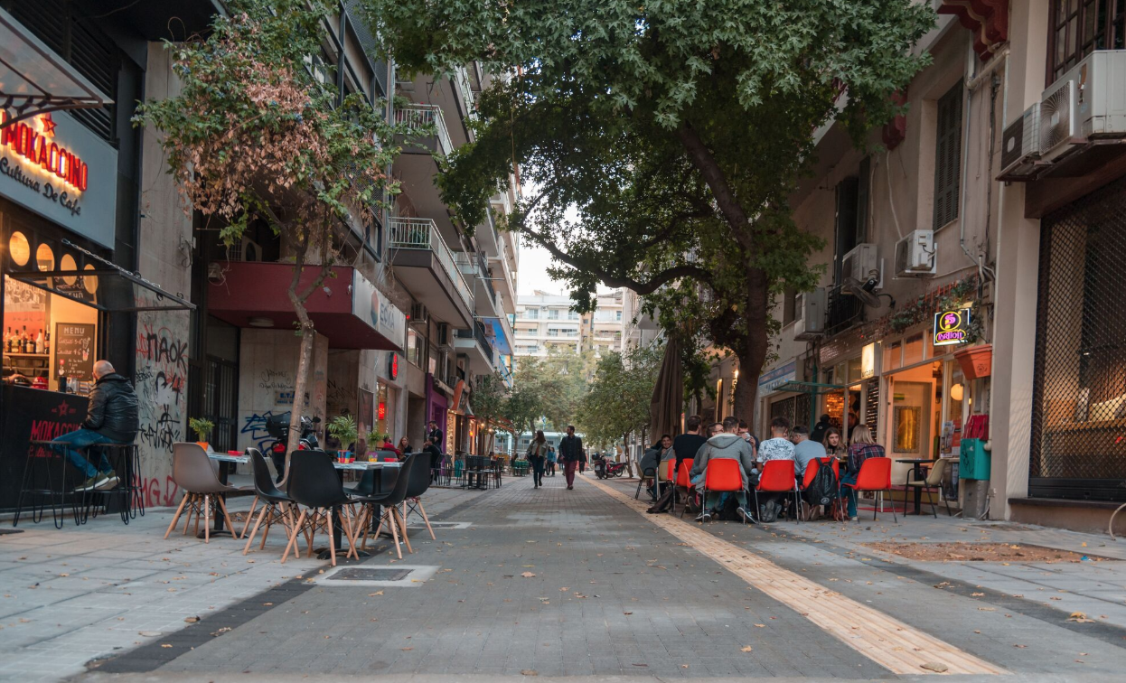 Στο δρόμο που αγαπάμε πολύ η εικόνα είναι πλέον αδιάφορη, τσιμεντένια, ίδια με όλα τα άλλα σημεία της πόλης. Τα αγαπημένα παρτέρια που χαρακτήριζαν την οδό στη μέση της απομακρύνθηκαν δυστυχώς και στη θέση τους δόθηκε άπειρος χώρος για να απλωθούν στο άχρωμο τσιμέντο τραπεζοκαθίσματα. Η προσωπικότητα του δρόμου χάθηκε μια για πάντα και ήδη οι καρέκλες δειλά δειλά απλώνονται στη μέση του πεζόδρομου.