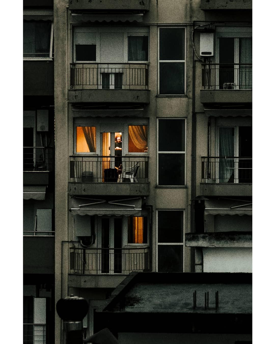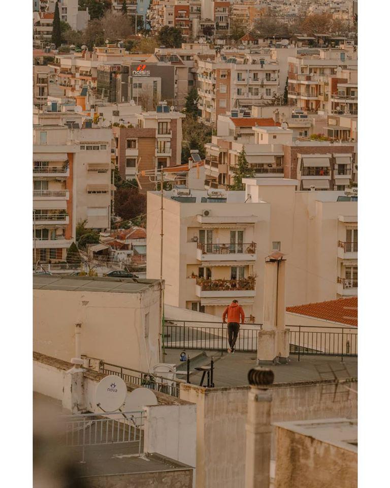 Τις μέρες αυτές αποτυπώνει μοναδικά στιγμές της αστικής καραντίνας μας. Γκρίζα χρώματα, θαμπά ηλιοβασιλέματα, σέπιες πάνω στο άχαρο αστικό τοπίο. Και μοναξιές.