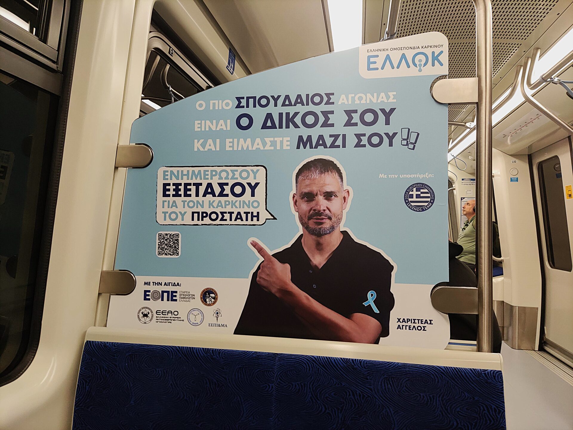 Στην καμπάνια «πρωταγωνιστεί» ο ποδοσφαιριστής Άγγελος Χαριστέας, που καλεί τους επιβάτες να ενημερωθούν και να εξεταστούν με μήνυμα: «Ο πιο σπουδαίος αγώνας είναι ο δικός σου, και είμαστε μαζί σου!»