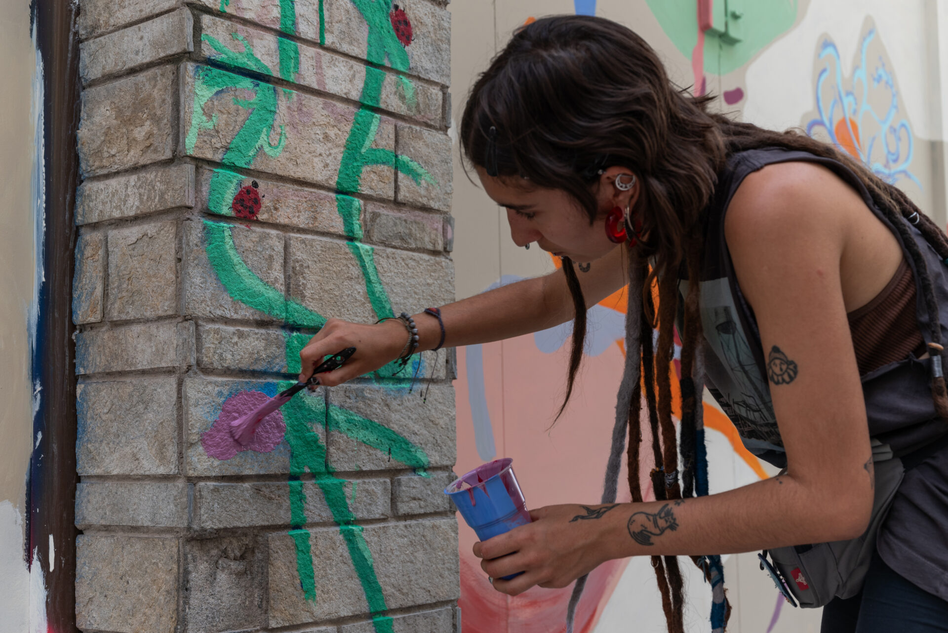 Οι σπουδαστές του Γ’ Εργαστηρίου Χαρακτικής της Σχολής Εικαστικών και Εφαρμοσμένων Τεχνών του ΑΠΘ δημιούργησαν έργα τόσο στους τοίχους του δρόμου, όσο και σε κάγκελα από πόρτες, σκορπίζοντας «φως» και χρώμα σε μία άχρωμη γειτονιά, χαρίζοντας της λίγο από το ταλέντο τους και λίγη από την τέχνη τους.
