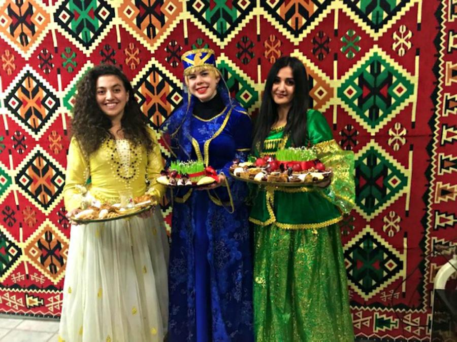 Στη συζήτηση μπαίνει μια φοιτήτρια του ΑΠΘ από την Ουαλία, η Κέιτι, ντυμένη με το παραδοσιακό φόρεμα της γυναίκας Αζέρας: «Δεν ήξερα τίποτα για την ξεχωριστή αυτή γιορτή, μέχρι που σήμερα έμαθα. Ντύθηκα με φόρεμα παραδοσιακό, να νιώθω έστω για ένα βράδυ Αζέρα!» λέει.