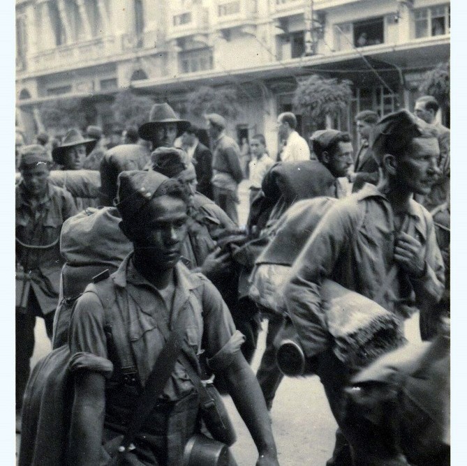Φωτογραφία της εποχής της γερμανικής κατοχής στην Θεσσαλονίκη, πιθανόν του Ιουνίου του 1941. Πρόκειται για Βρετανούς και Αυστραλούς (ίσως και Νεοζηλανδούς) αιχμαλώτους πολέμου, που διασχίζουν την Εγνατία οδό συνοδεία Γερμανών.