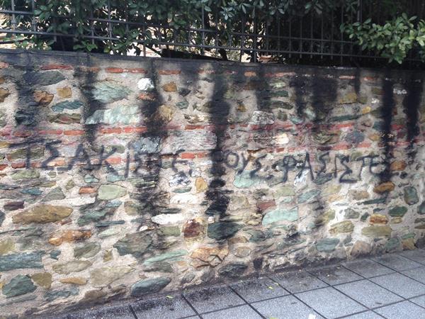 Εμείς είμαστε η Θεσσαλονίκη. «Να γκρεμιστούν τα στρατόπεδα συγκέντρωσης», «Τσακίστε τους φασίστες», «Άννα σε αγαπώ»,