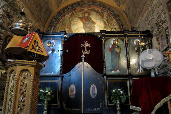 Το πρόσθετο κτίσμα στην πρόσοψή του με άφησε αποσβολωμένη και ειλικρινά δεν ξέρω πώς επιτράπηκε απο την Εφορεία Μνημείων. Ο διάκοσμος εσωτερικά και εξωτερικά έχει την σφραγίδα του καινούριου εκκλησιαστικού κιτς και είναι ολοφάνερο ότι τα παλιά στασίδια έχουν πεταχτεί από καιρό, ενώ μπροστά στην είσοδο βρίσκονται παραταγμένα φίρδιν μίγδιν καρέκλες και μανουάλια. Ανεμιστήρες, λάμπες, καρέκλες και κιλιμάκια είναι απλωμένα στον ελάχιστο εσωτερικό χώρο του πανέμορφου ναού και προσπάθησα επί ματαίω να κρατήσω τα μάτια μου κολημμένα στον τρούλο με το μοναδικό ψηφιδωτό για να νιώσω την ατμόσφαιρα των αιώνων που βαραίνουν το κτίσμα. Στην αυλίτσα μπροστά εκτός από τα πανέμορφα λουλούδια που γεμίζουν τις γλάστρες και τη θέα που ξεκουράζει το μάτι, οι πλαστικές καρέκλες με το τραπεζάκι που ταιριάζουν σε μια οποιαδήποτε βεράντα σπιτιού εδώ μου φάνηκαν τελείως παράταιρες και άκομψες. Ίσως η Εφορία θα έπρεπε να εξετάζει πιο συχνά τις μικροεπεμβάσεις στα μνημεία και κυρίως αυτά που έχουν διεθνή προβολή αφού βρίσκονται στον κατάλογο της παγκόσμιας κληρονομιάς της UNESCO.