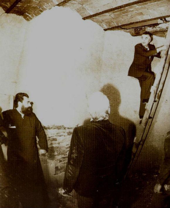 Ο Δήμαρχος Θεσσαλονίκης Μιχάλης Παπαδόπουλος κατεβαίνοντας στην κρύπτη του μακεδονικού αγώνα, έκπληκτος θαυμάζει το εσωτερικό μεγαλείο της κρύπτης