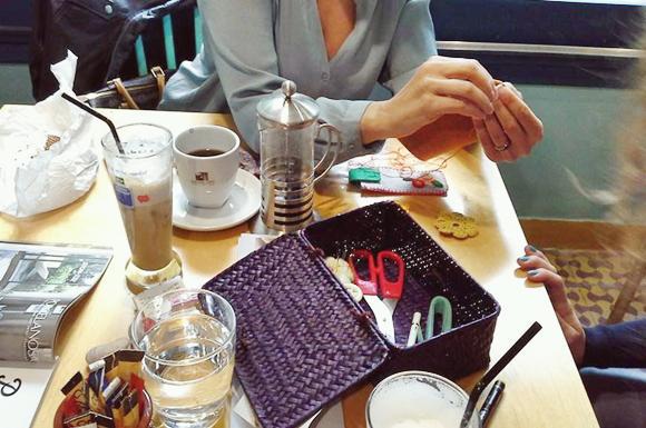 Το «Κουμπί Coffee & Crafts» είναι ένας χώρος που σίγουρα υπόσχεται να αλλάξει τη συνήθεια του «πάμε για έναν καφέ» στη Θεσσαλονίκη και να γίνει το νέο αγαπημένο μας στέκι. Εδώ εκτός από το να δοκιμάσετε καφέ, μυρωδάτη σοκολάτα και χειροποίητα κεράσματα, ο χώρος προσφέρει τη δυνατότητα να φτιάξετε δικές σας κατασκευές και δώρα για αγαπημένα πρόσωπα με υλικά και εξοπλισμό που μπορείτε να βρείτε στο «Κουμπί». Κι αν θέλετε να το δοκιμάσετε αλλά δεν γνωρίζετε από χειροτεχνία; To «Κουμπί» μπορεί να σας μάθει, αφού οι crafters της πόλης έχουν ήδη προγραμματίσει καθημερινά σεμινάρια παντός είδους στον χώρο, καλύπτοντας τομείς από κατασκευή κοσμημάτων, πλέξιμο και κέντημα, μέχρι ραπτομηχανή και κατασκευή πάνινης κούκλας και στολιδιών. Κάποια από τα υλικά είναι προς πώληση ενώ κάποια στοιχειώδη διατίθενται δωρεάν και ο εξοπλισμός μπορεί να χρησιμοποιηθεί με χρέωση ανά ώρα ή ανά μισάωρο. Μπορεί βέβαια κανείς να φέρει και τα δικά του υλικά και εργαλεία, όπως το μαλλί και τις βελόνες του, και να φτιάξει ότι επιθυμεί ελεύθερα. Επιπλέον, το «Κουμπί» έχει θεσπίσει την δική του ειδική happy craft hour, καθώς από τις 10 μέχρι τις 12 το πρωί και από τις 4 μέχρι τις 6 το απόγευμα μπορεί κανείς με 4 ευρώ να απολαύσει απλό ρόφημα ή αναψυκτικό και μαζί να κάνει χρήση όλου του εξοπλισμού και των υλικών.